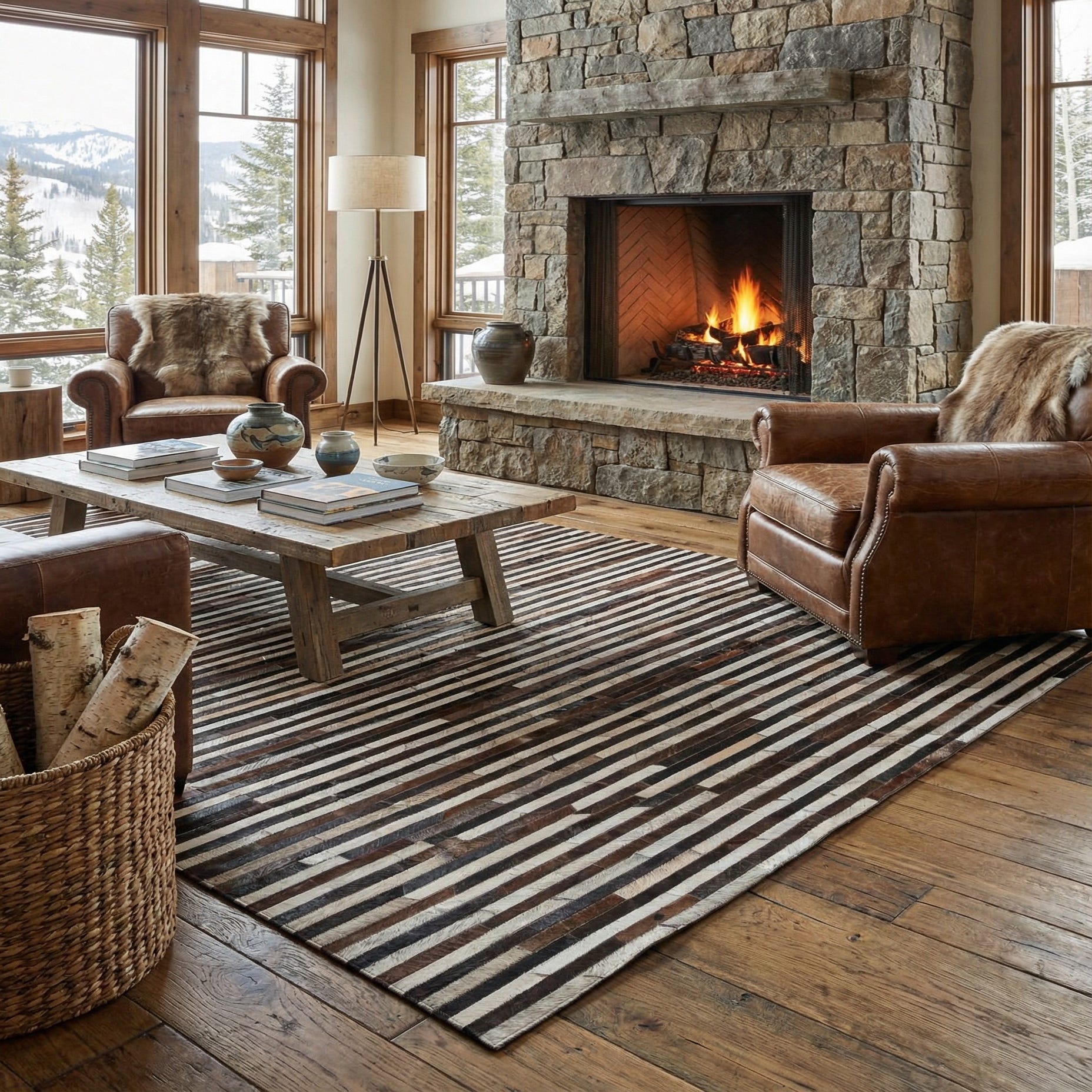 Primary color is Black. Colors in this rug include: Black, Brown, Ivory, Gray.