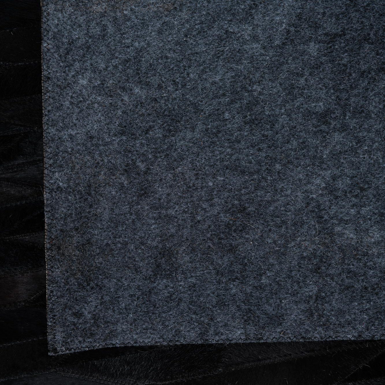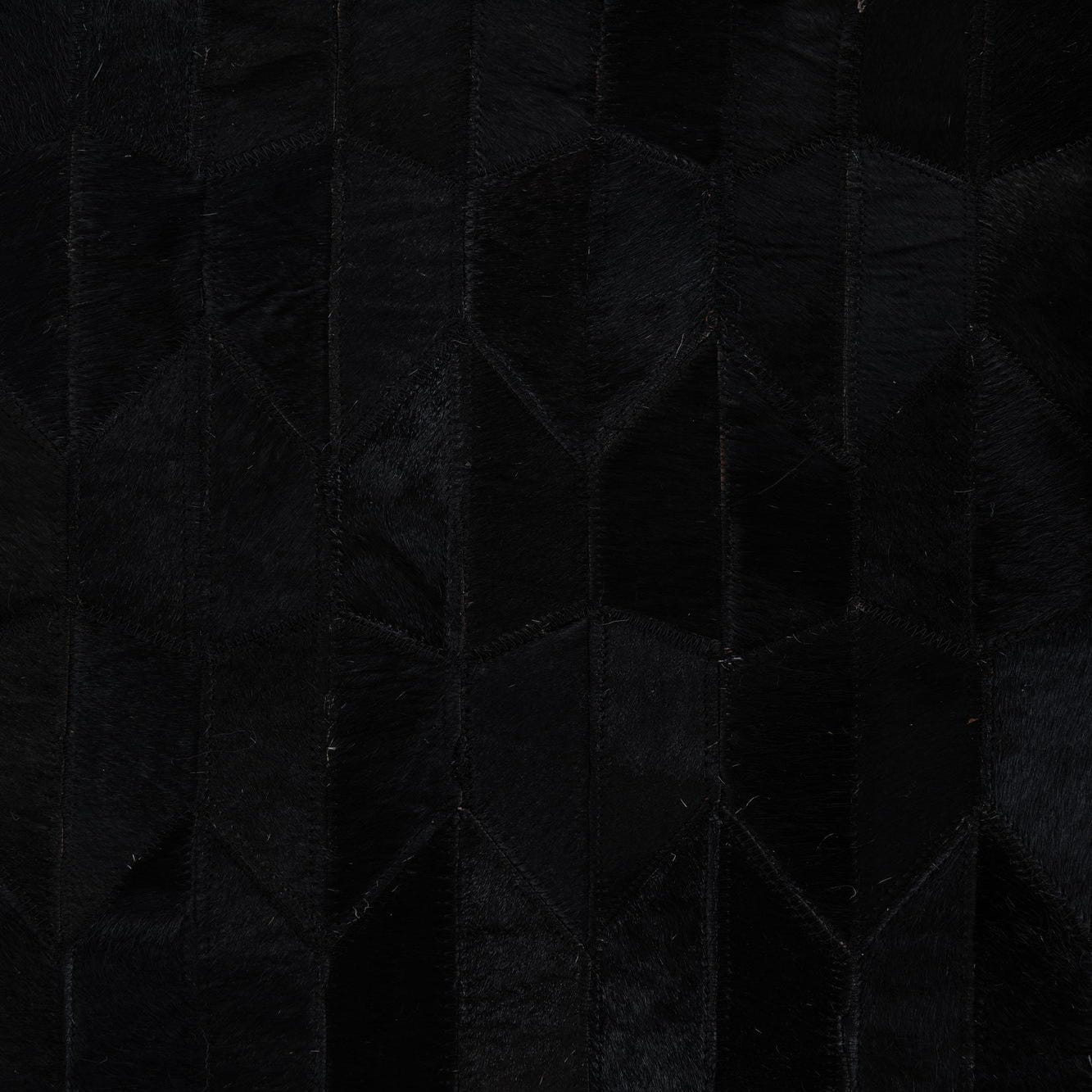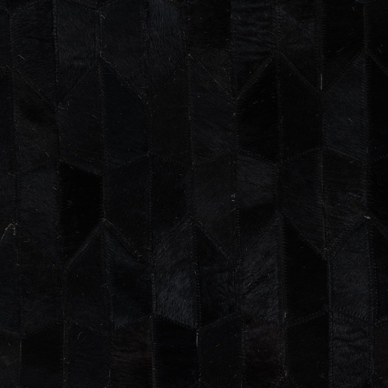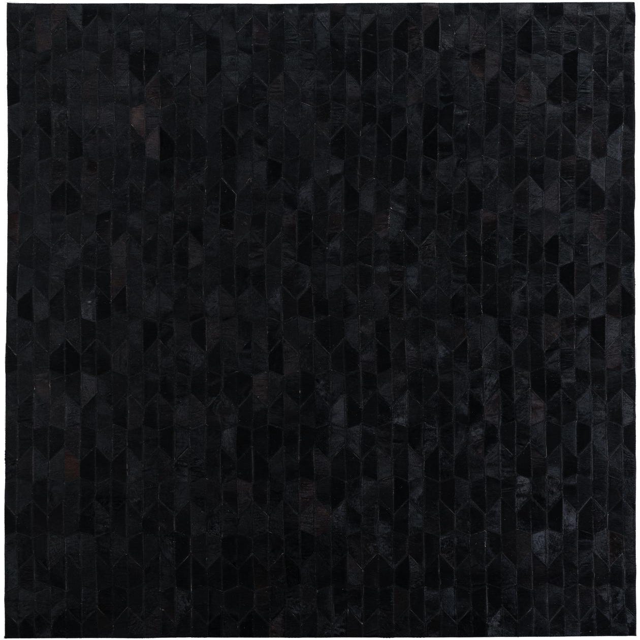 The natural variances in the shades of black and brown add subtle depth and complexity to the design, while the geometric pattern complements a range of interior styles from modern to industrial. This rug would work exceptionally well in a minimalist setting that emphasizes clean lines and monochromatic palettes, or it could serve as a sophisticated grounding element in a more eclectic or masculine room design. The use of genuine materials ensures that each rug is unique, with slight variations that enhance its individual character.