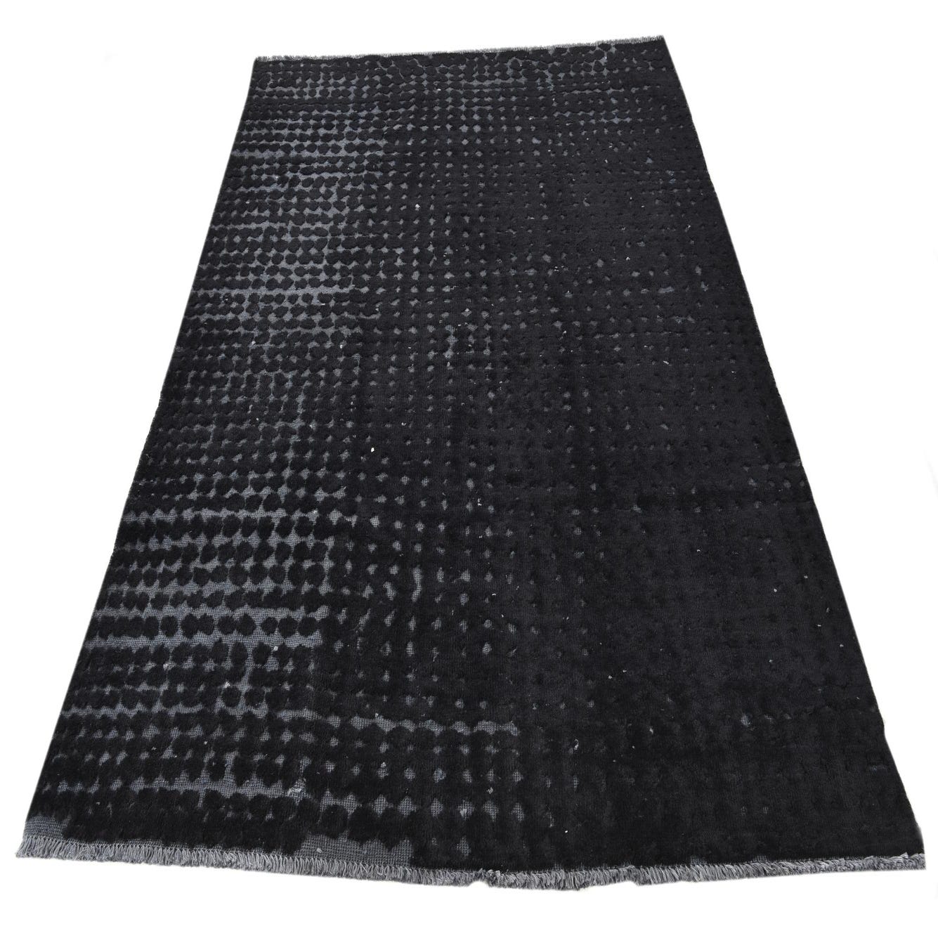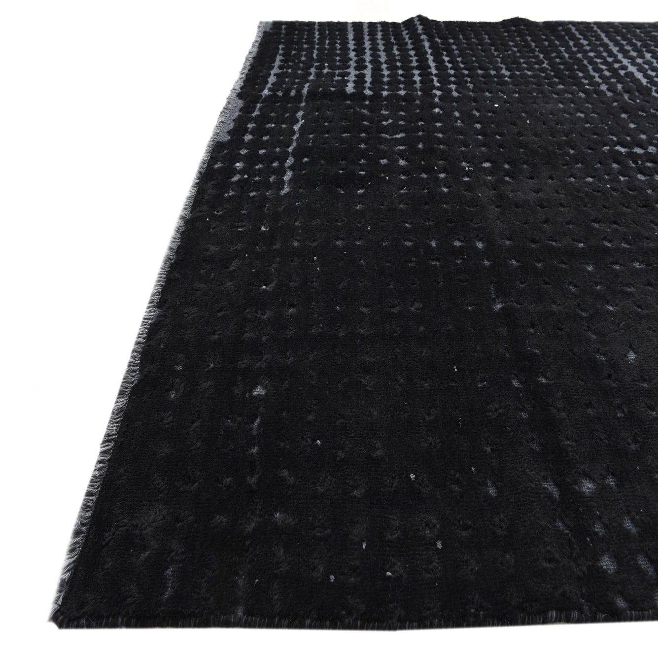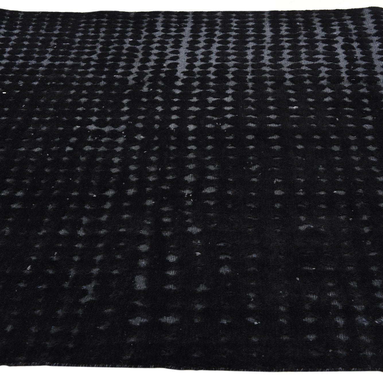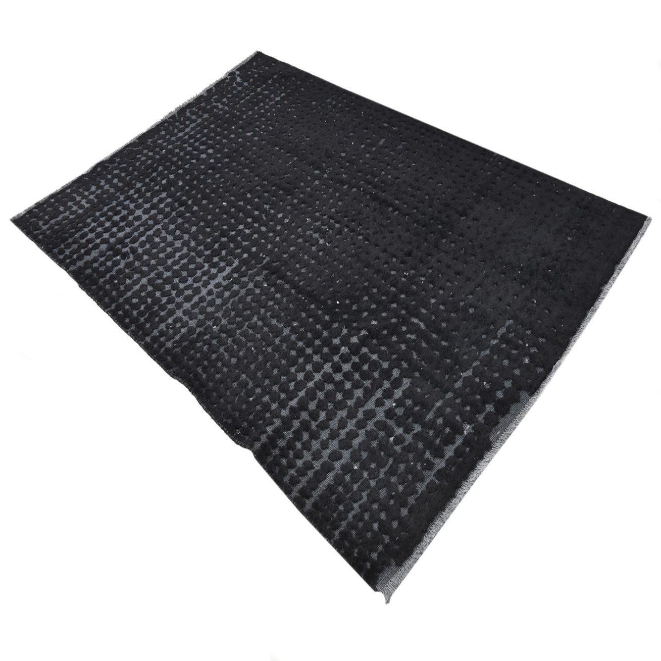 A 5x8 rectangular Darya rug in black wool, featuring a modern textured pattern with varying pile heights.