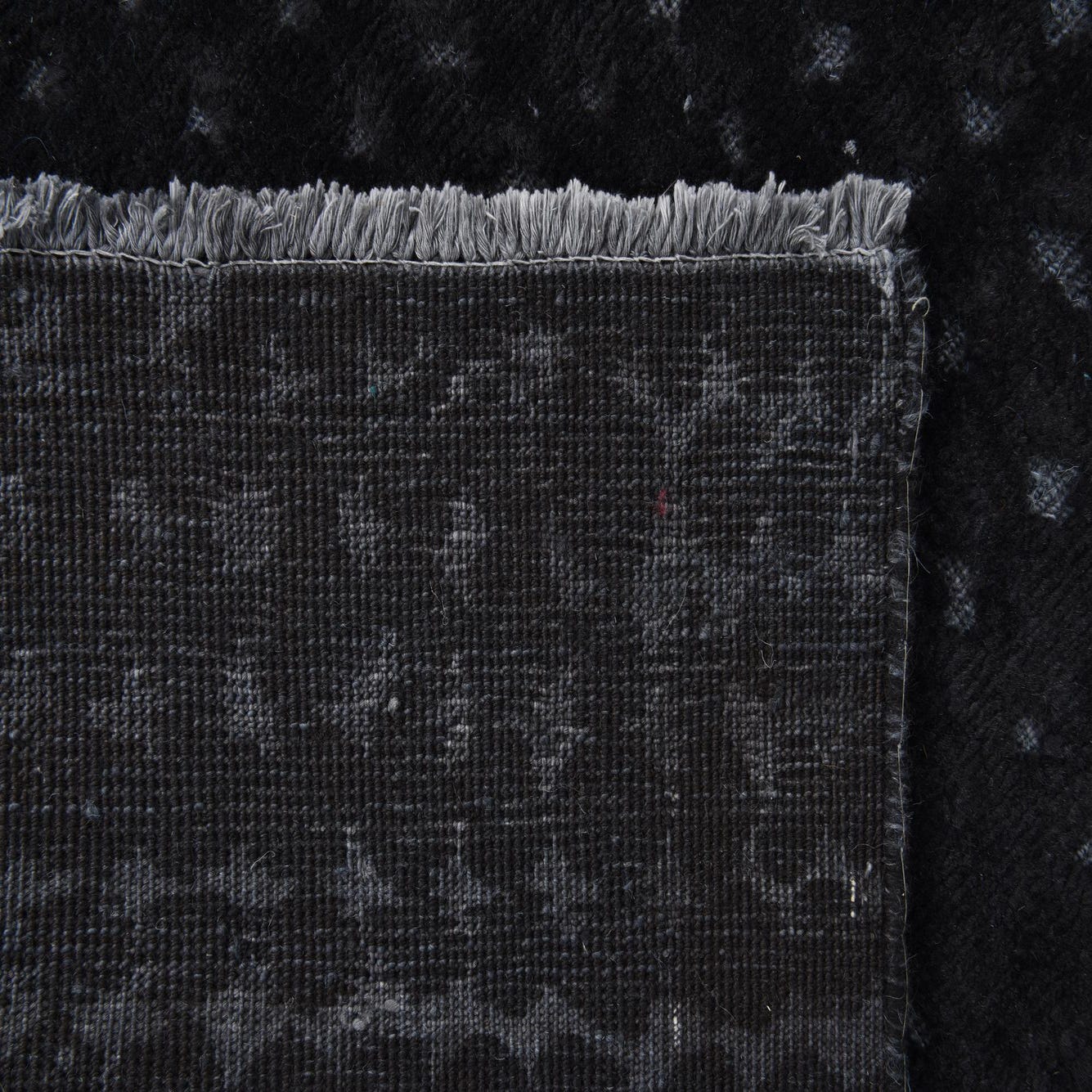 Primary color is Black. Colors in this rug include: Black, Gray.
