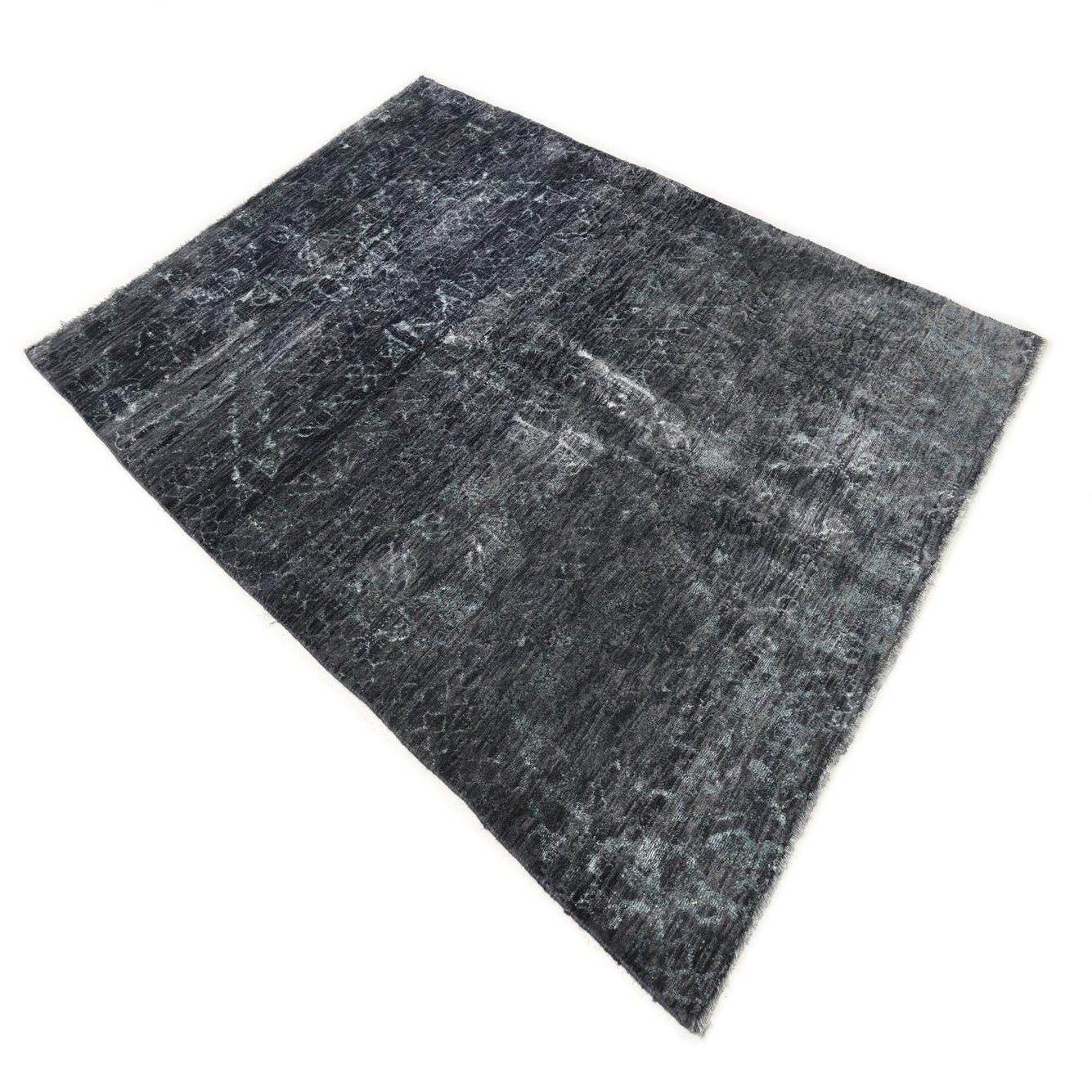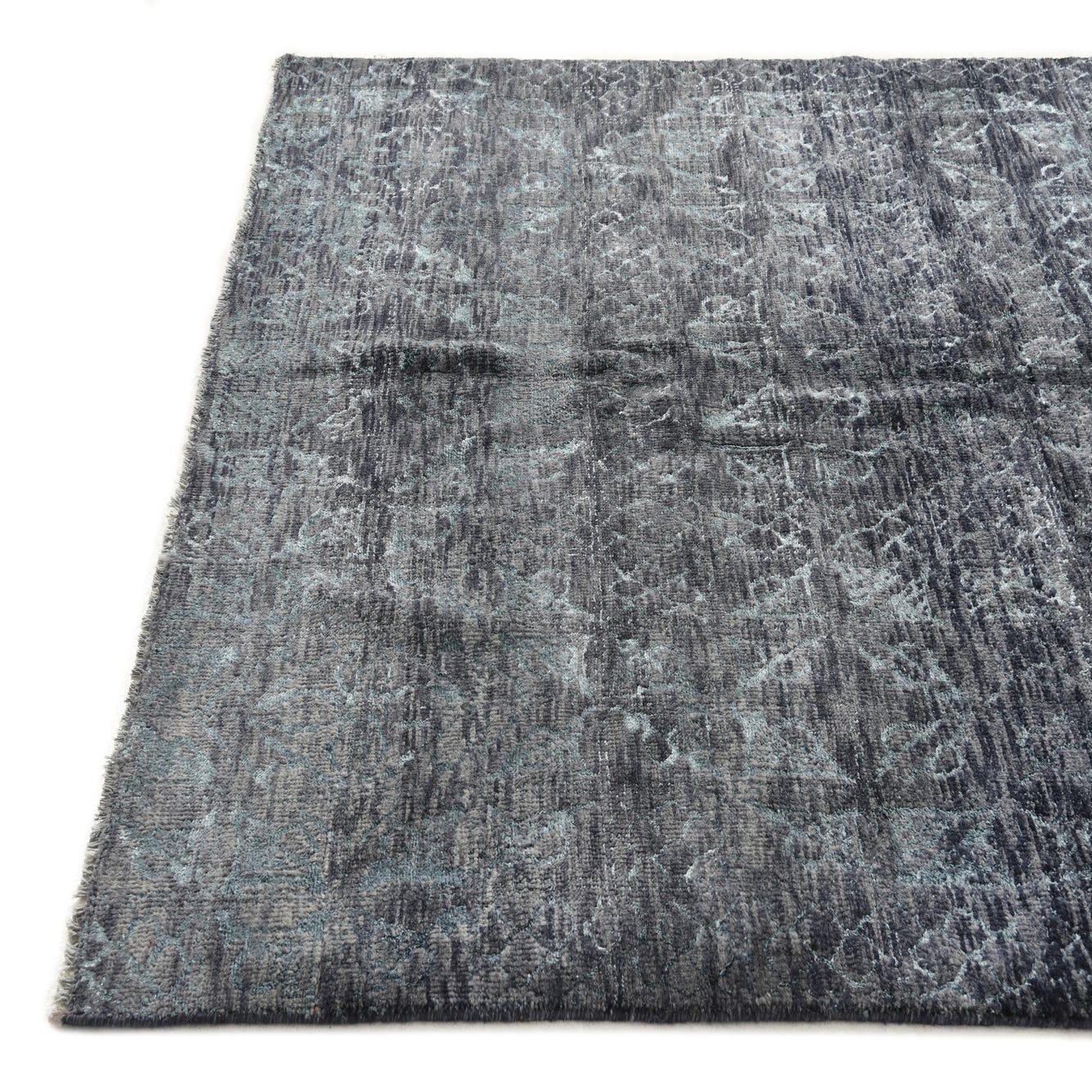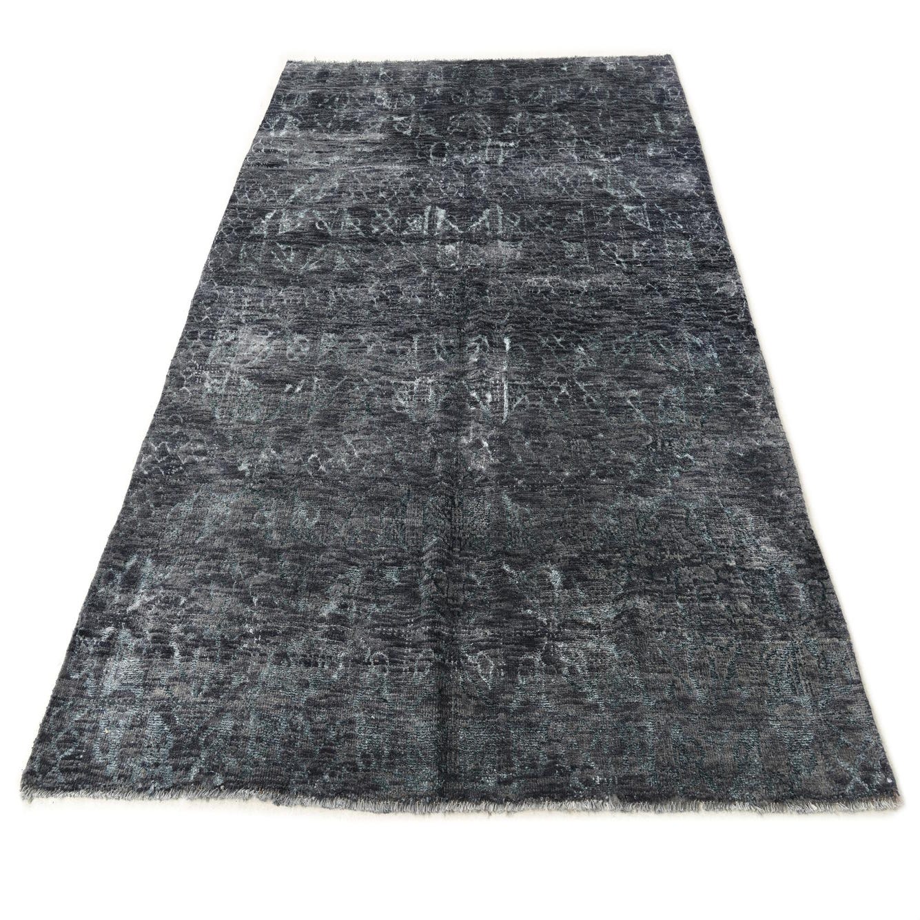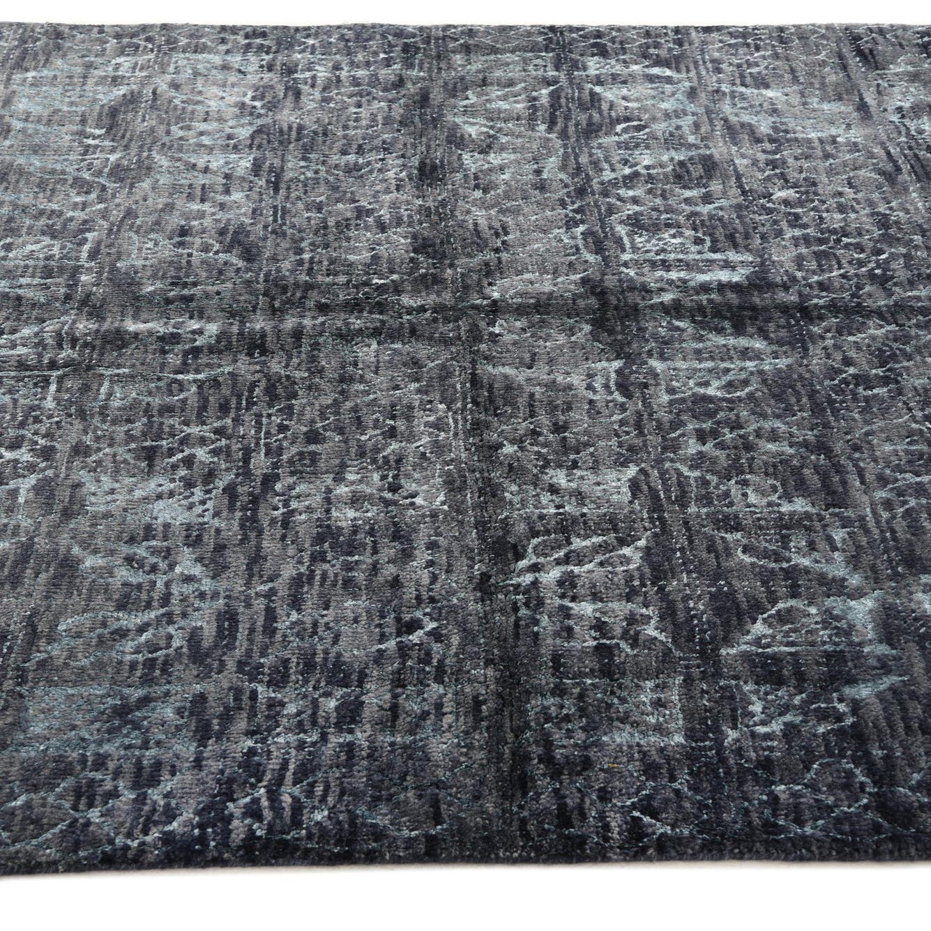 A 5x8 rectangular Darya rug in black with a distressed modern oriental abstract pattern, made of 100% wool.
