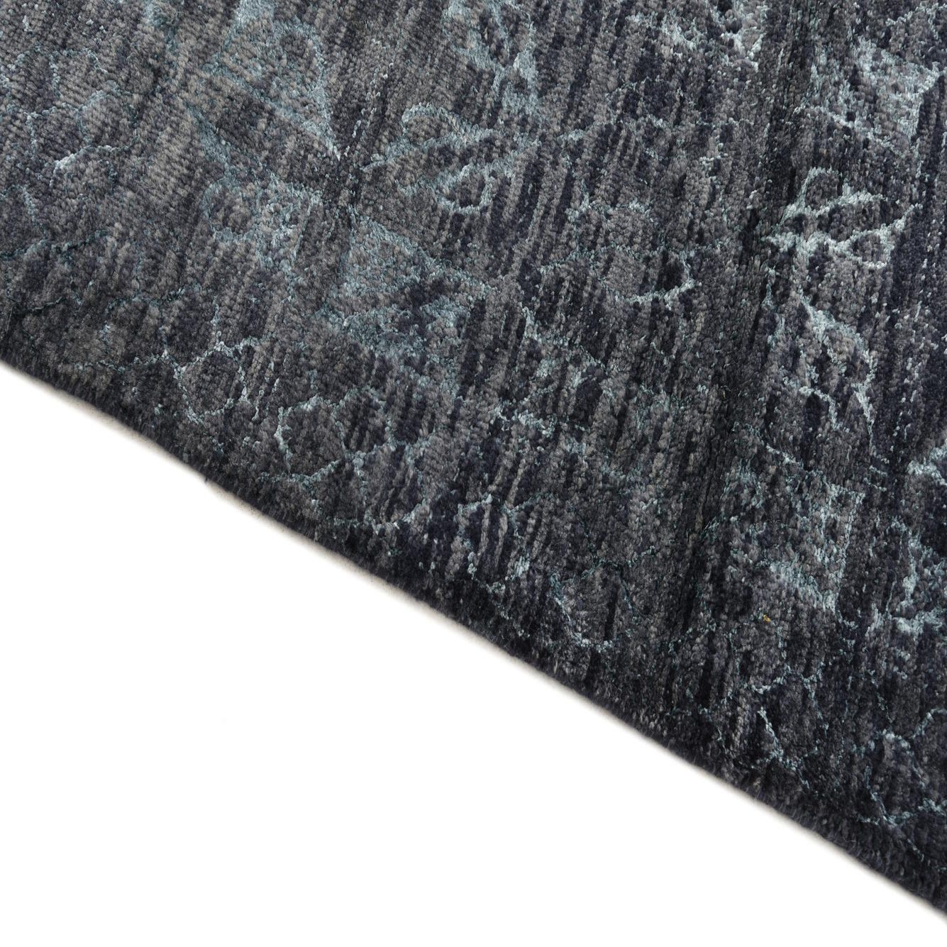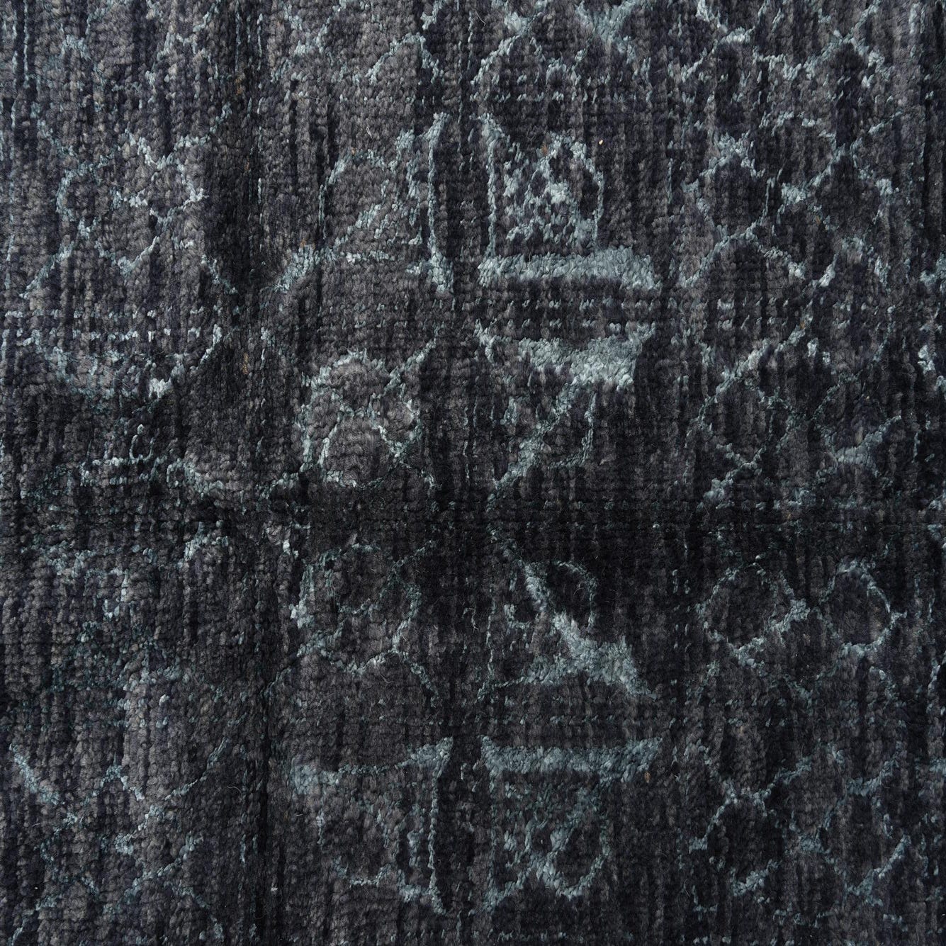 Primary color is Black. Colors in this rug include: Black, Gray, Navy Blue.
