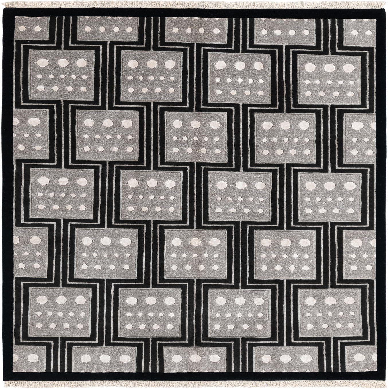 Primary color is Black. Colors in this rug include: Black, Beige, Gray, Silver.