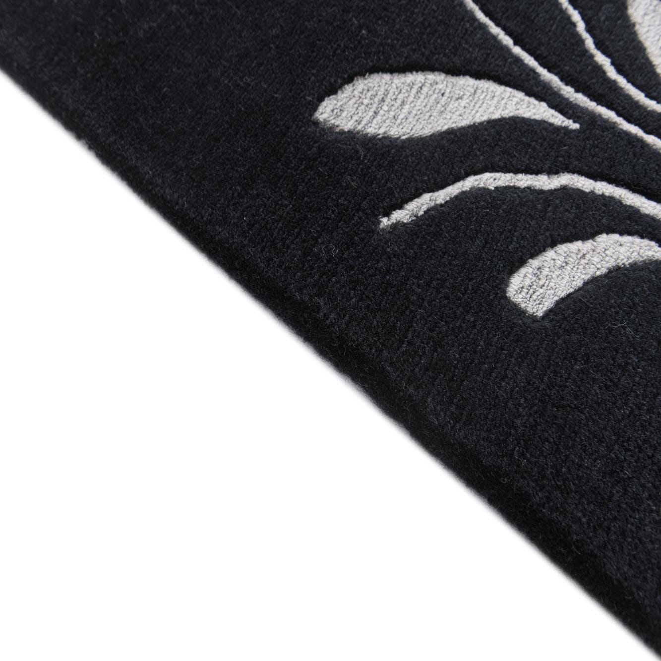 Primary color is Black. Colors in this rug include: Black, Gray, Silver.