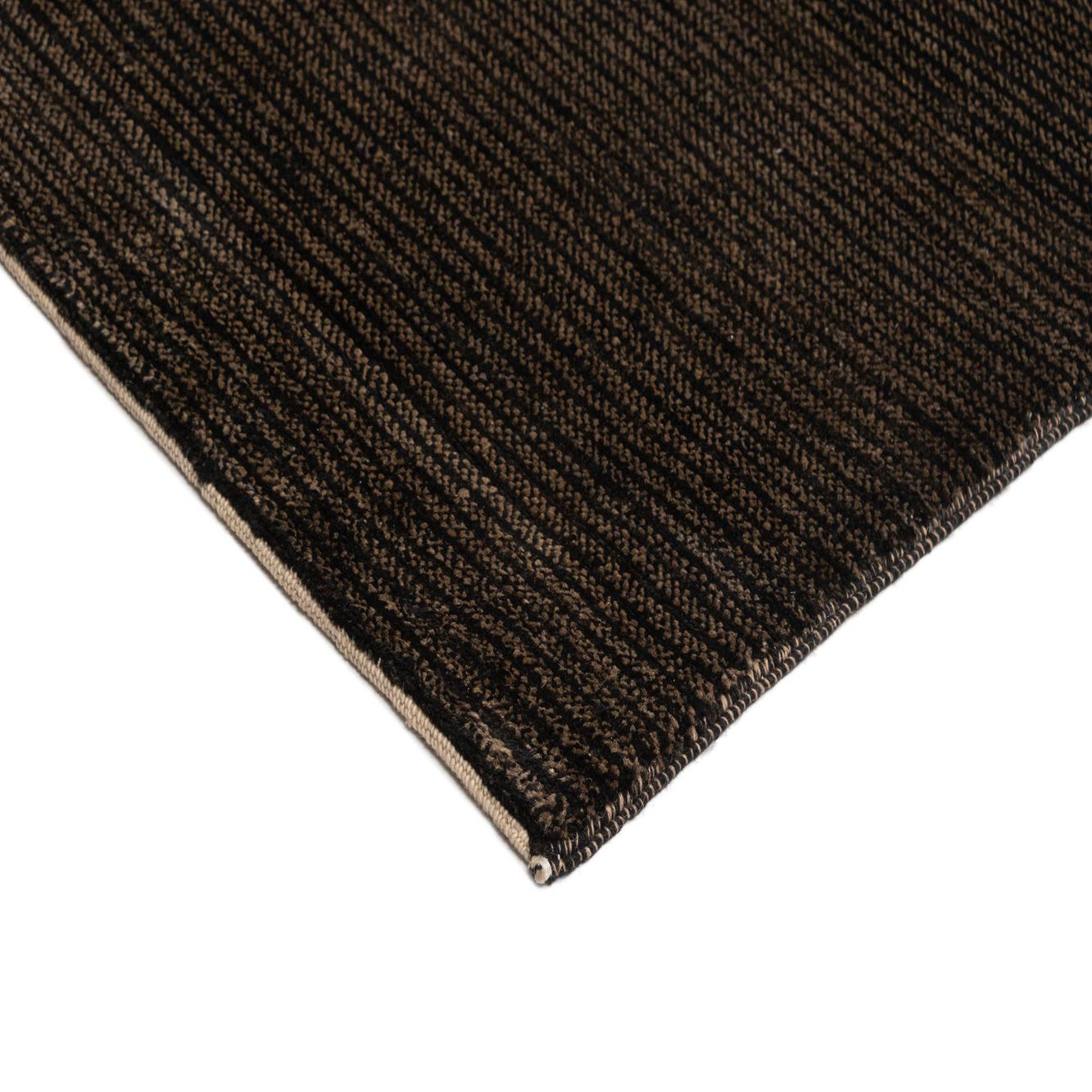 Primary color is Black. Colors in this rug include: Black, Black, Brown.
