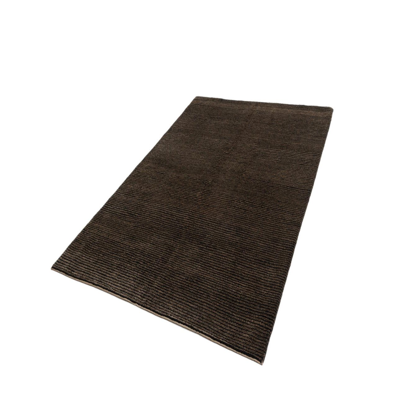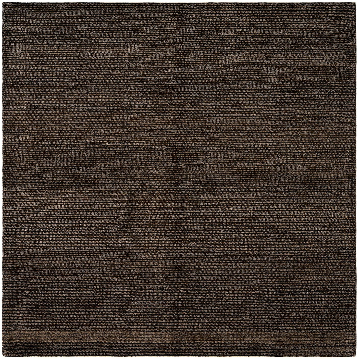 The Juma collection offers a hand-made rug crafted from 100% wool, presenting durability and a soft texture underfoot. This 5x8 piece features a solid black background with understated hints of brown that create a subtle yet sophisticated visual appeal. The rug's pattern is minimally designed, allowing it to blend seamlessly with a variety of decor themes, from contemporary minimalist to more traditional settings.