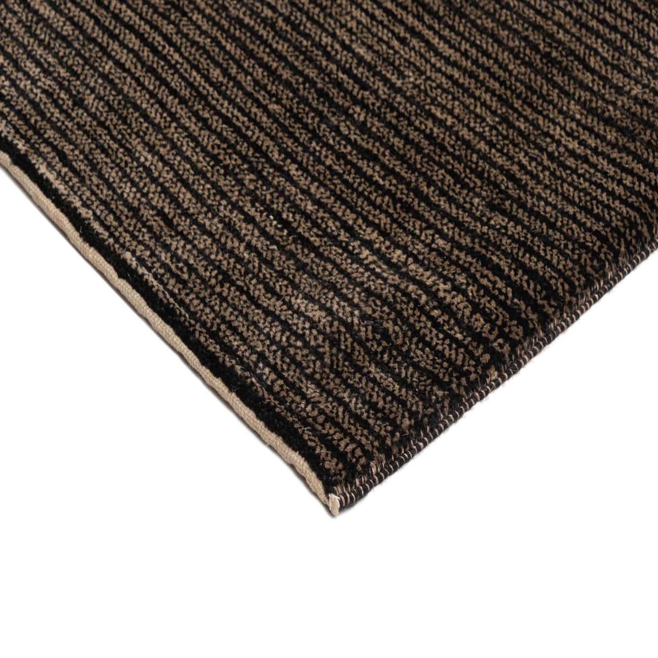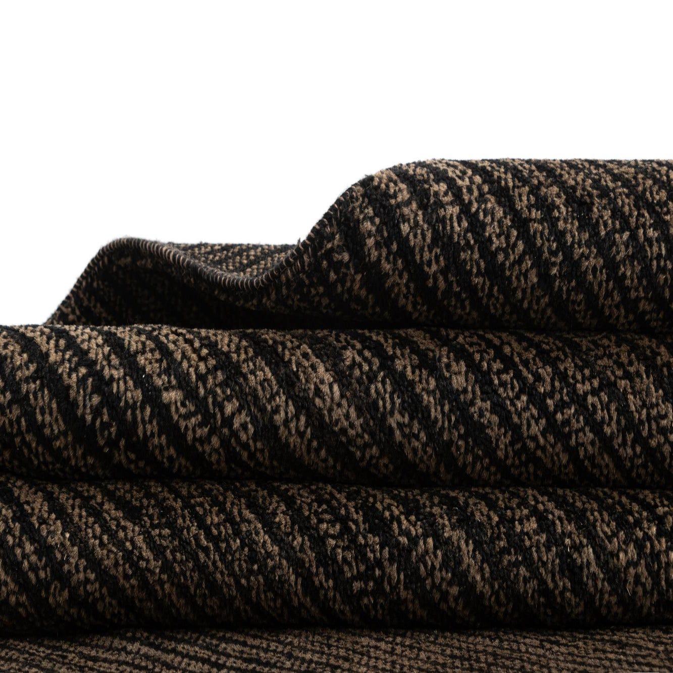Primary color is Black. Colors in this rug include: Black, Black, Brown.