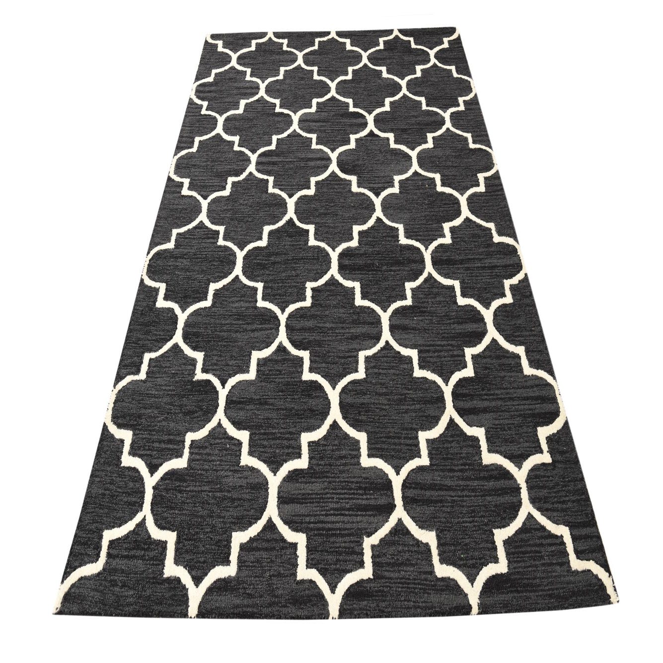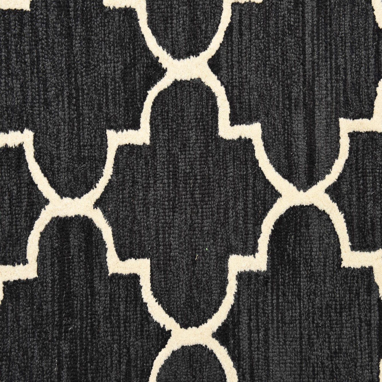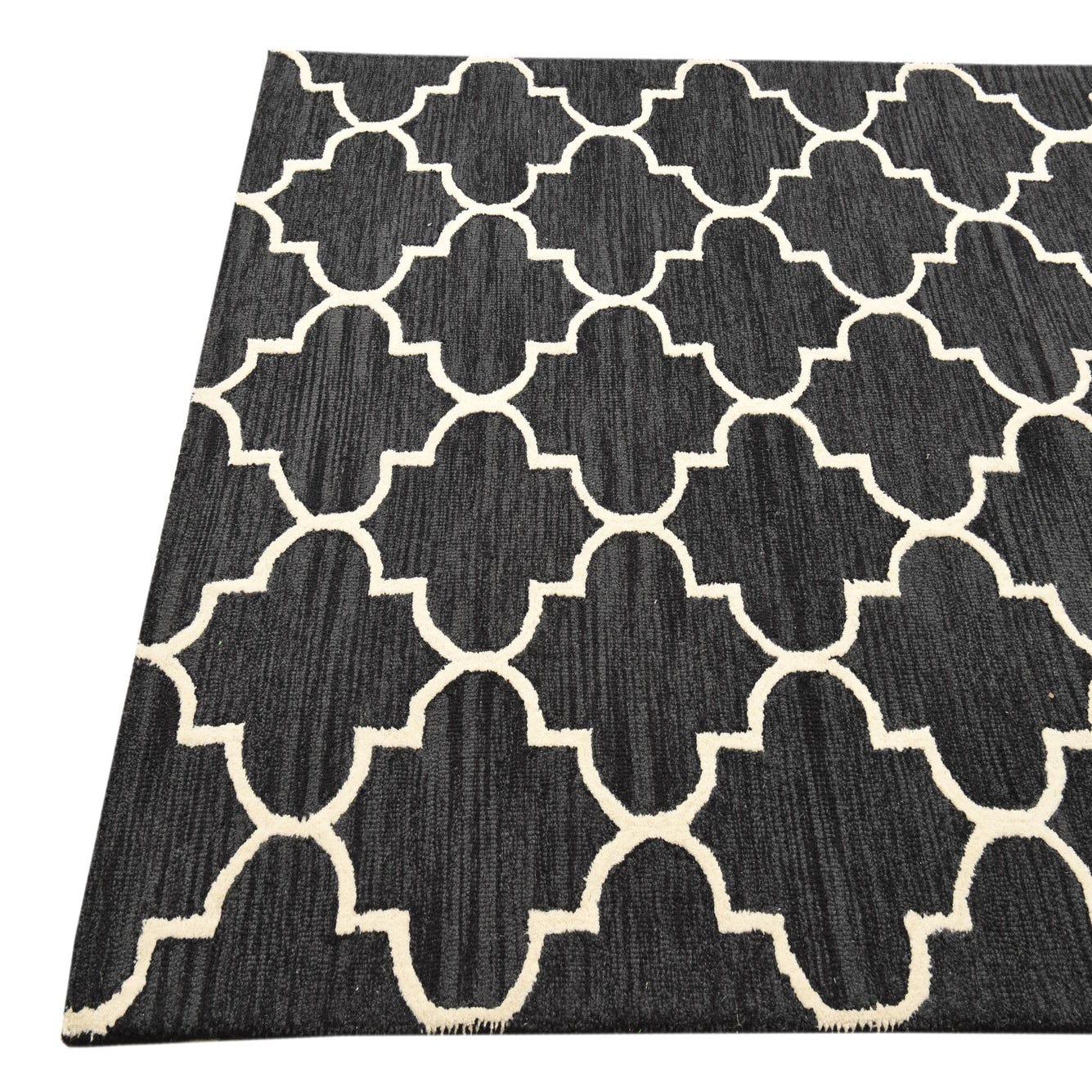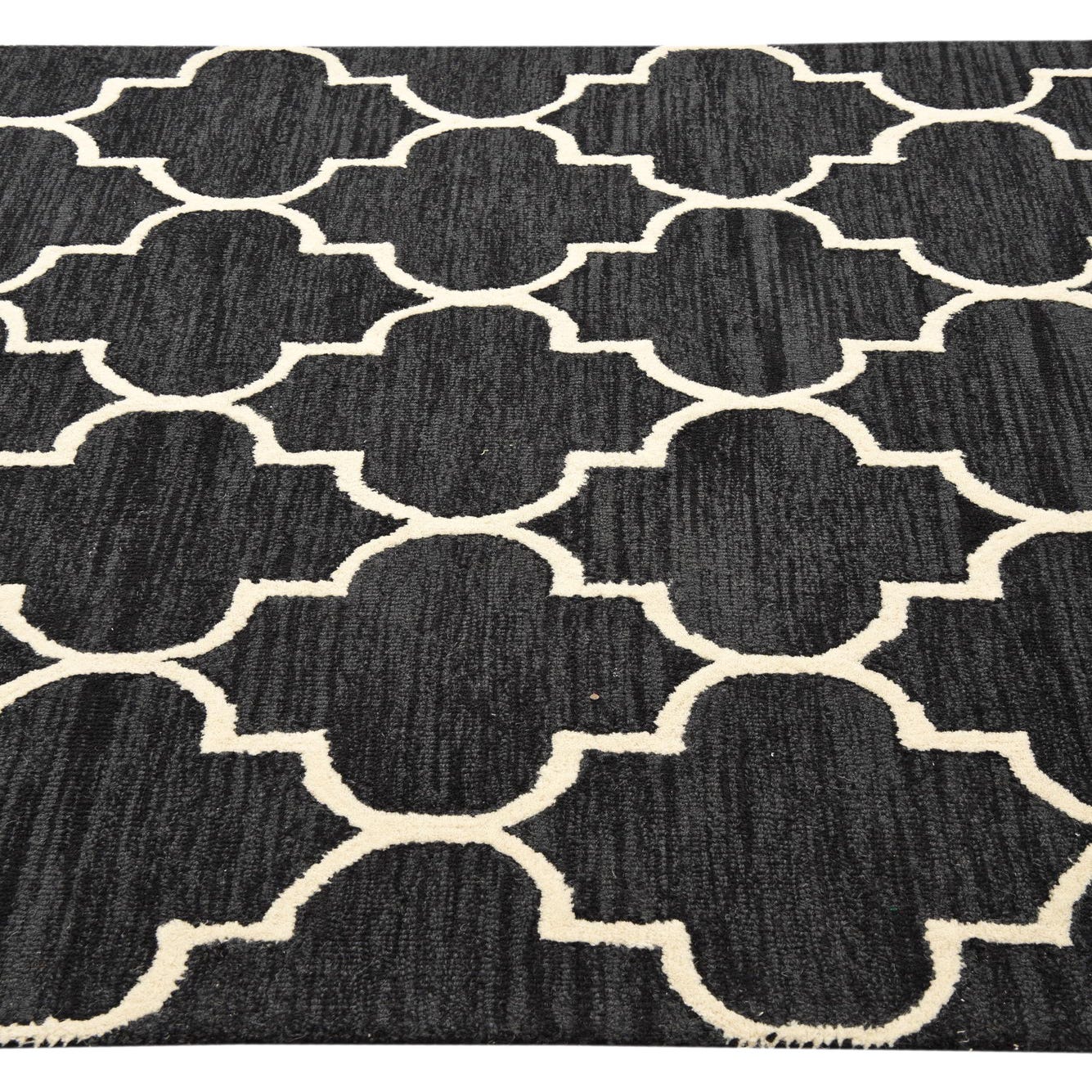 A 5x8 rectangular black Luna Collection rug with a modern off-white trellis pattern, suitable for a living room.