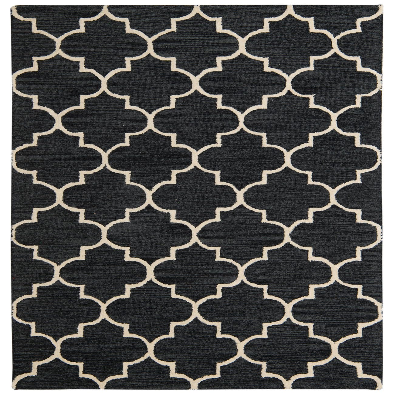 Primary color is Black. Colors in this rug include: Black, Ivory.