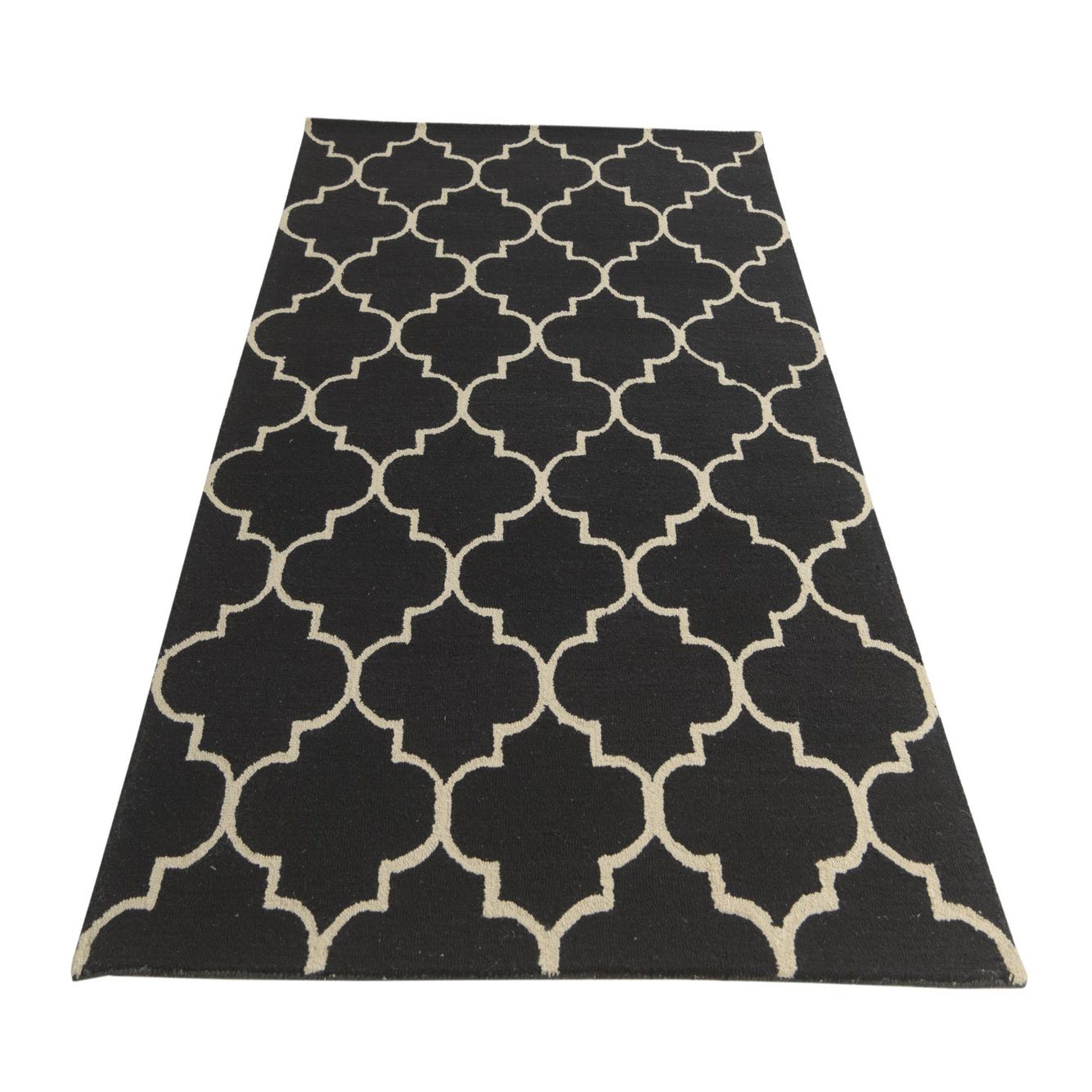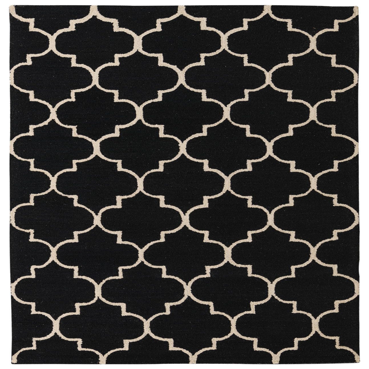 Primary color is Black. Colors in this rug include: Black, Ivory.