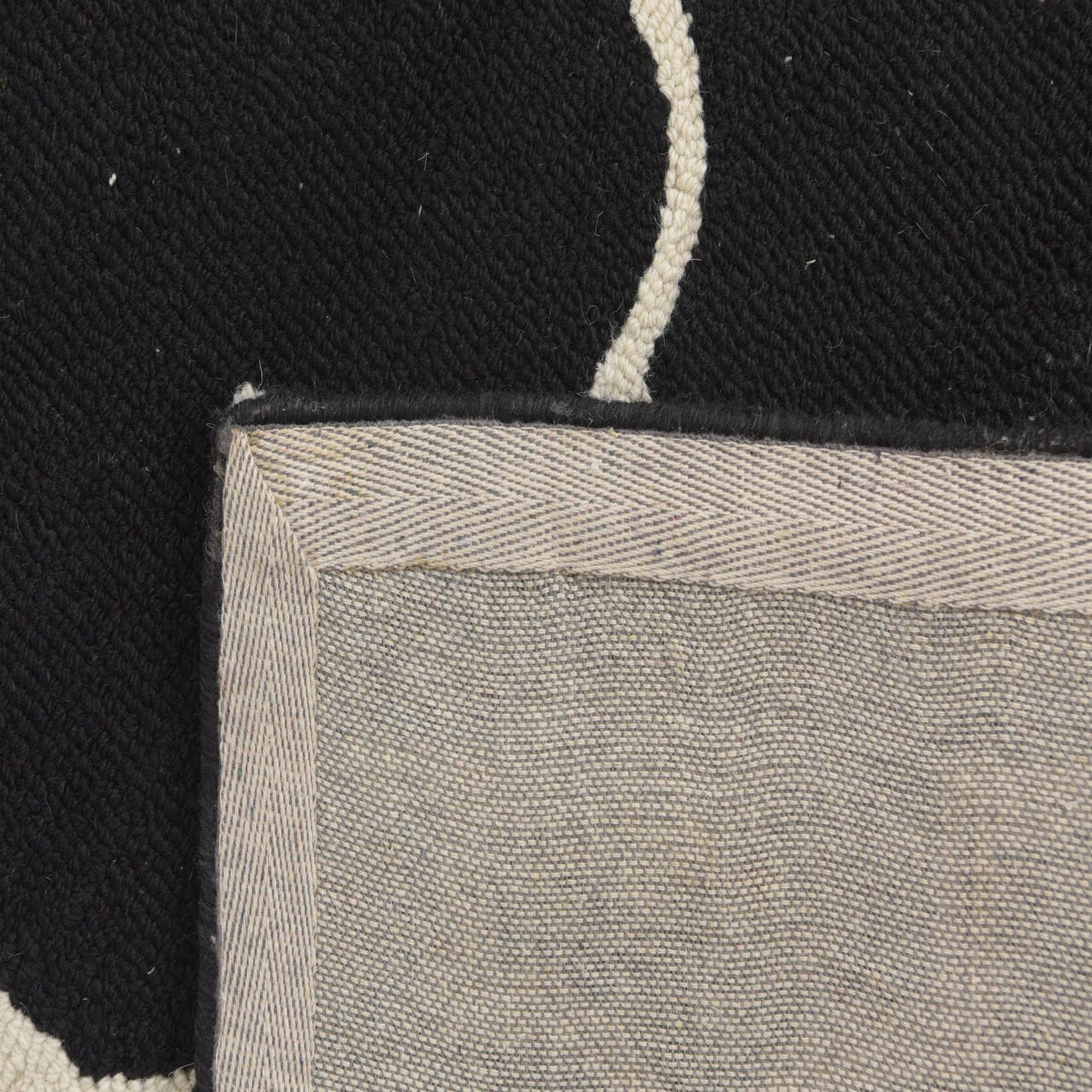 Primary color is Black. Colors in this rug include: Black, Ivory.