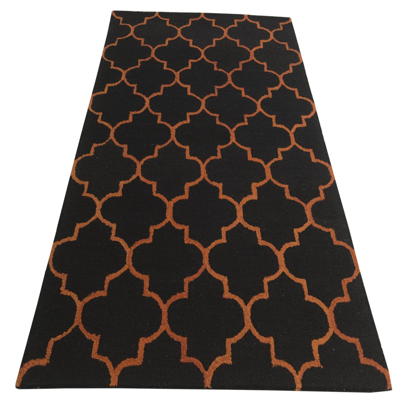 Primary color is Black. Colors in this rug include: Black, Orange.