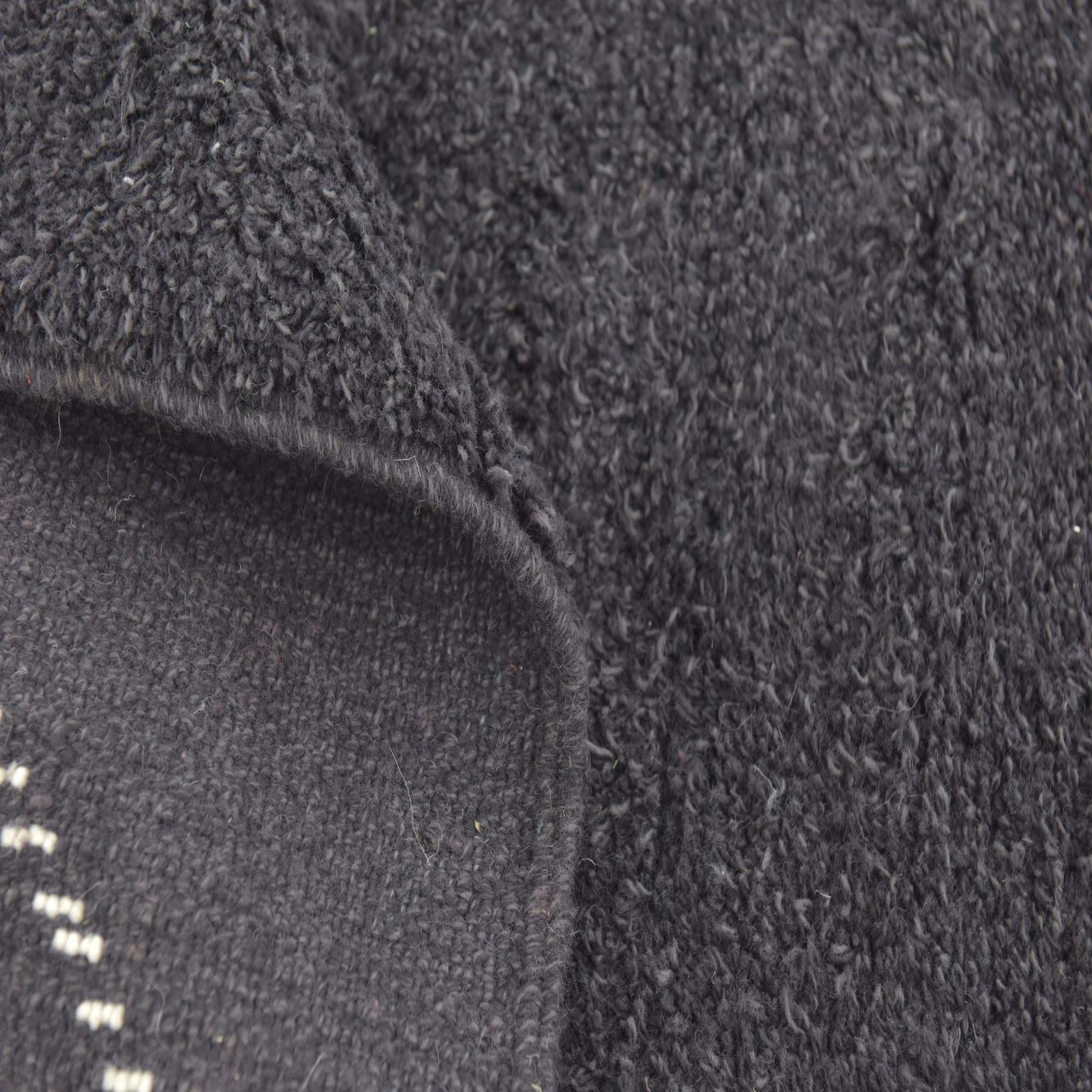 Primary color is Black. Colors in this rug include: Black, Ivory.