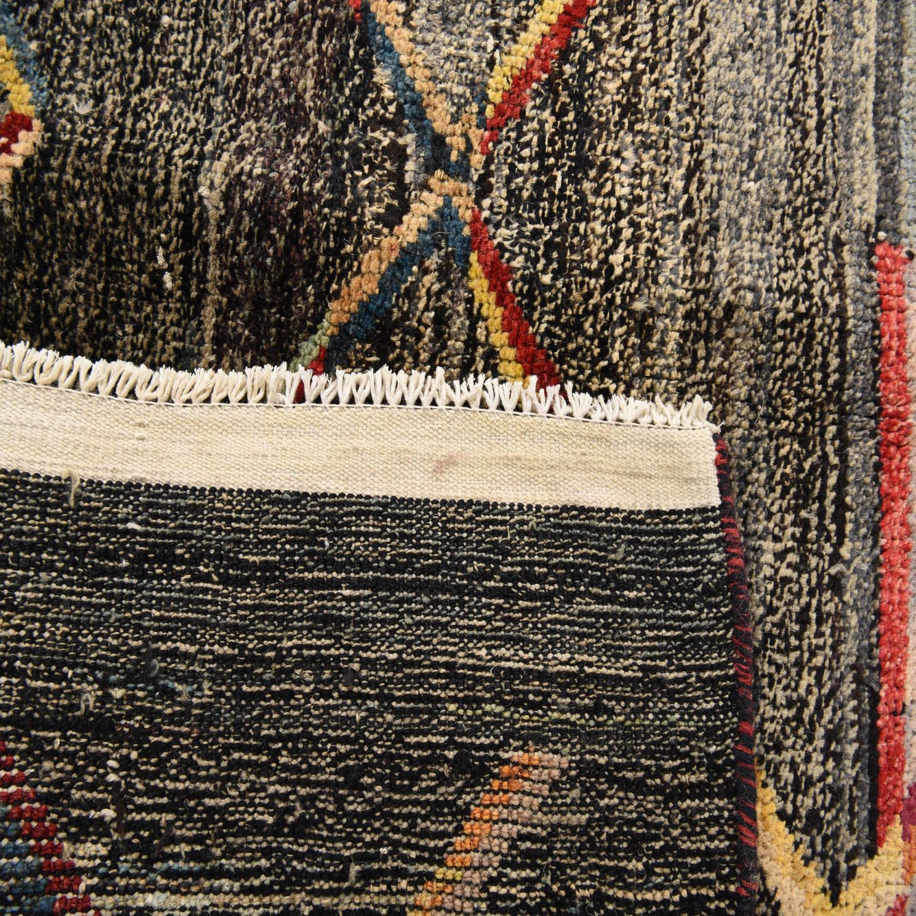 Hand-knotted from 100% wool, this piece brings natural warmth and depth to a room and balances bold patterning with a dark, grounding background. It works well beneath a sofa and coffee table in a modern living room, layered over hardwood in a cozy study or reading nook, or placed at the foot of a bed to add color without overwhelming a neutral palette. Pair it with warm wood tones, leather seating and matte black metal accents for an industrial or mid-century look, or mix with textured linens, woven baskets and brass details for a relaxed, global-inspired interior.