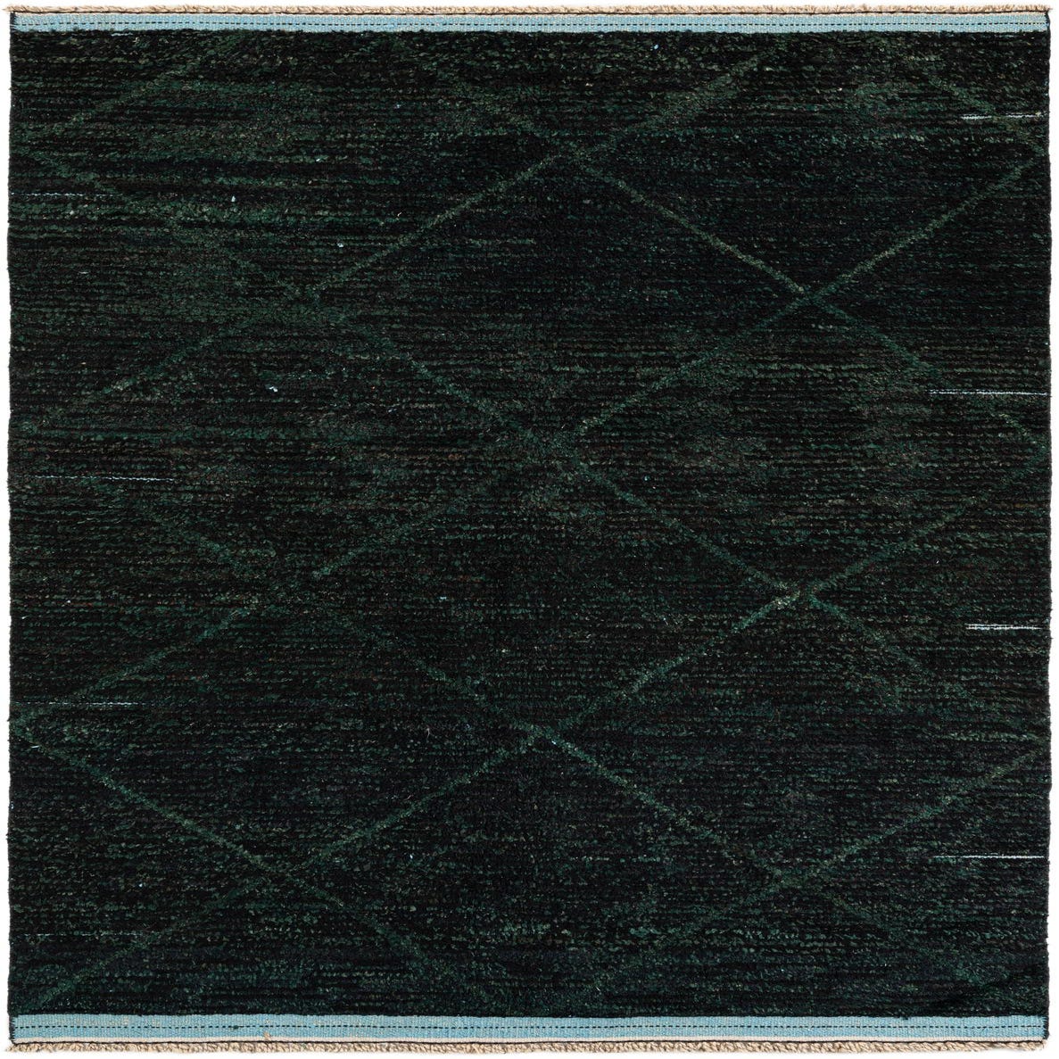Primary color is Black. Colors in this rug include: Black, Hunter Green.