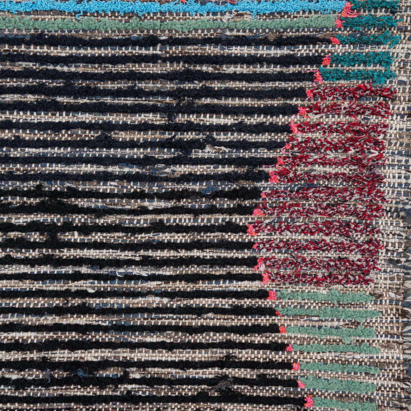 Primary color is Black. Colors in this rug include: Black, Blue, Brown, Gray, Green, Pink, Navy Blue.
