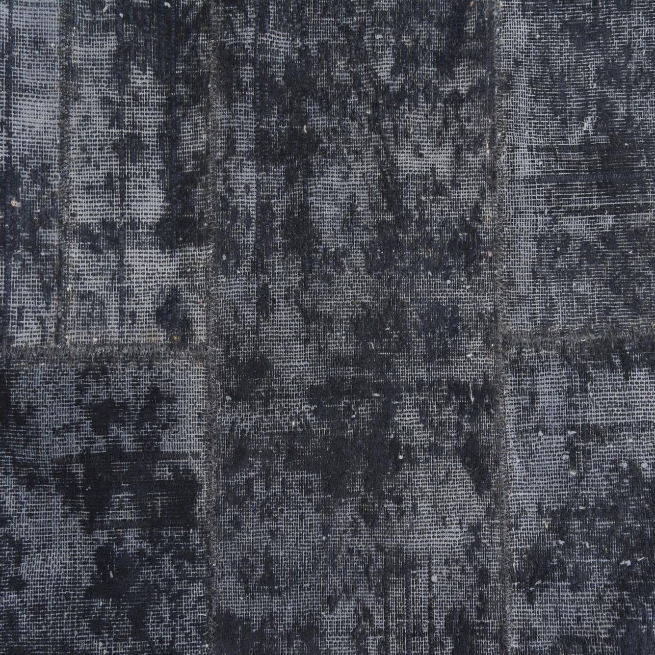 A 5x8 rectangular black Ultra Vintage wool rug with a distressed Persian patchwork pattern, ideal for a modern living room.