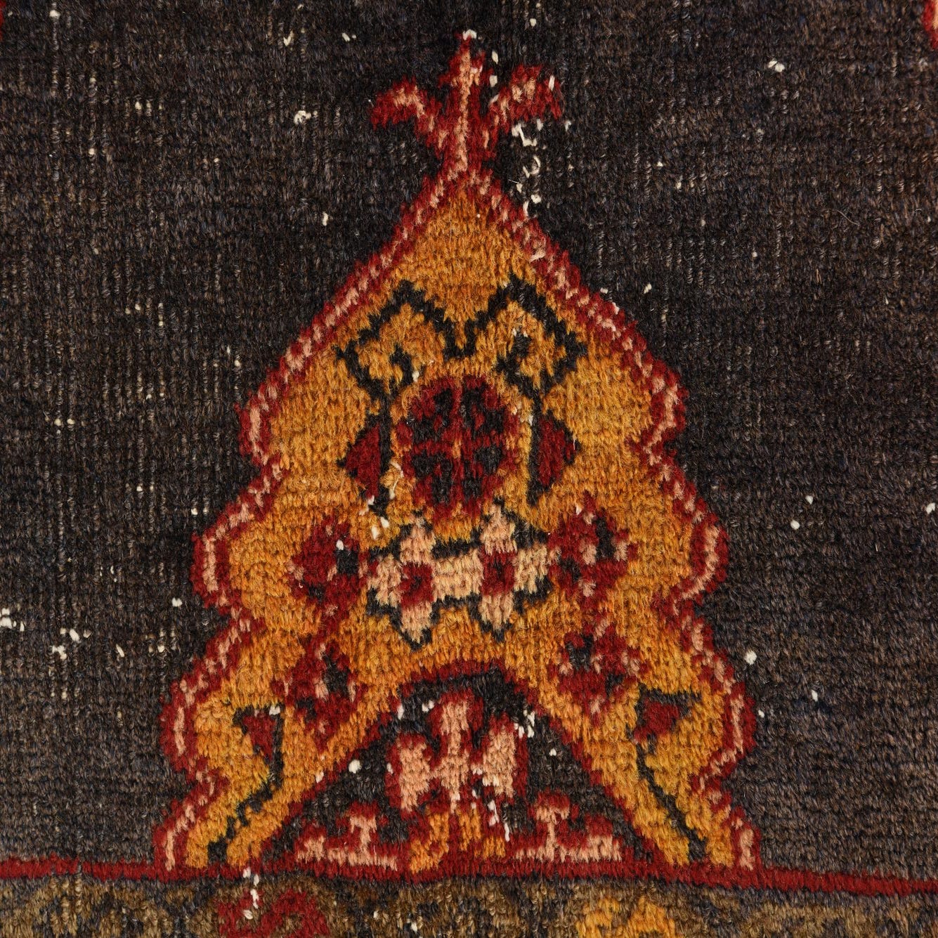 Primary color is Black. Colors in this rug include: Black, Gold, Ivory, Red, Brown.