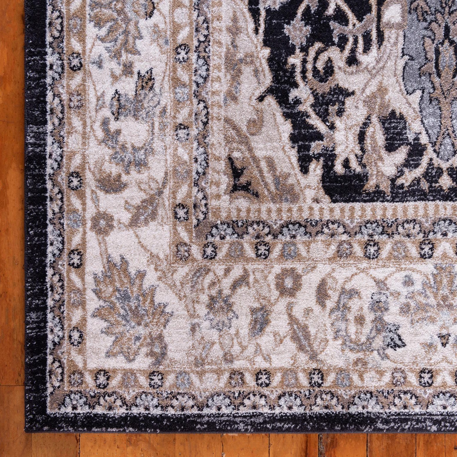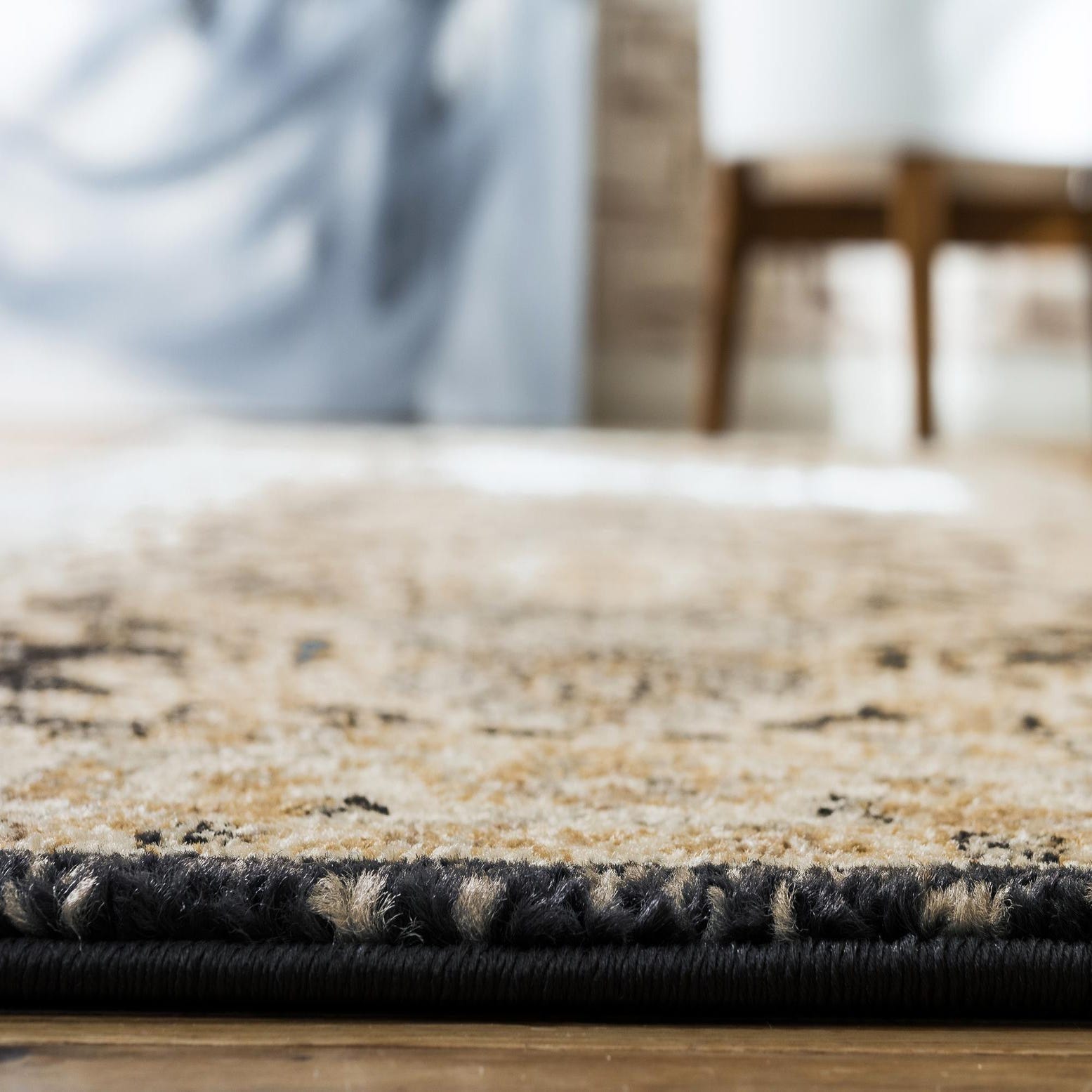Primary color is Black. Colors in this rug include: Black, Brown, Cream, Gray, Tan, Ivory.