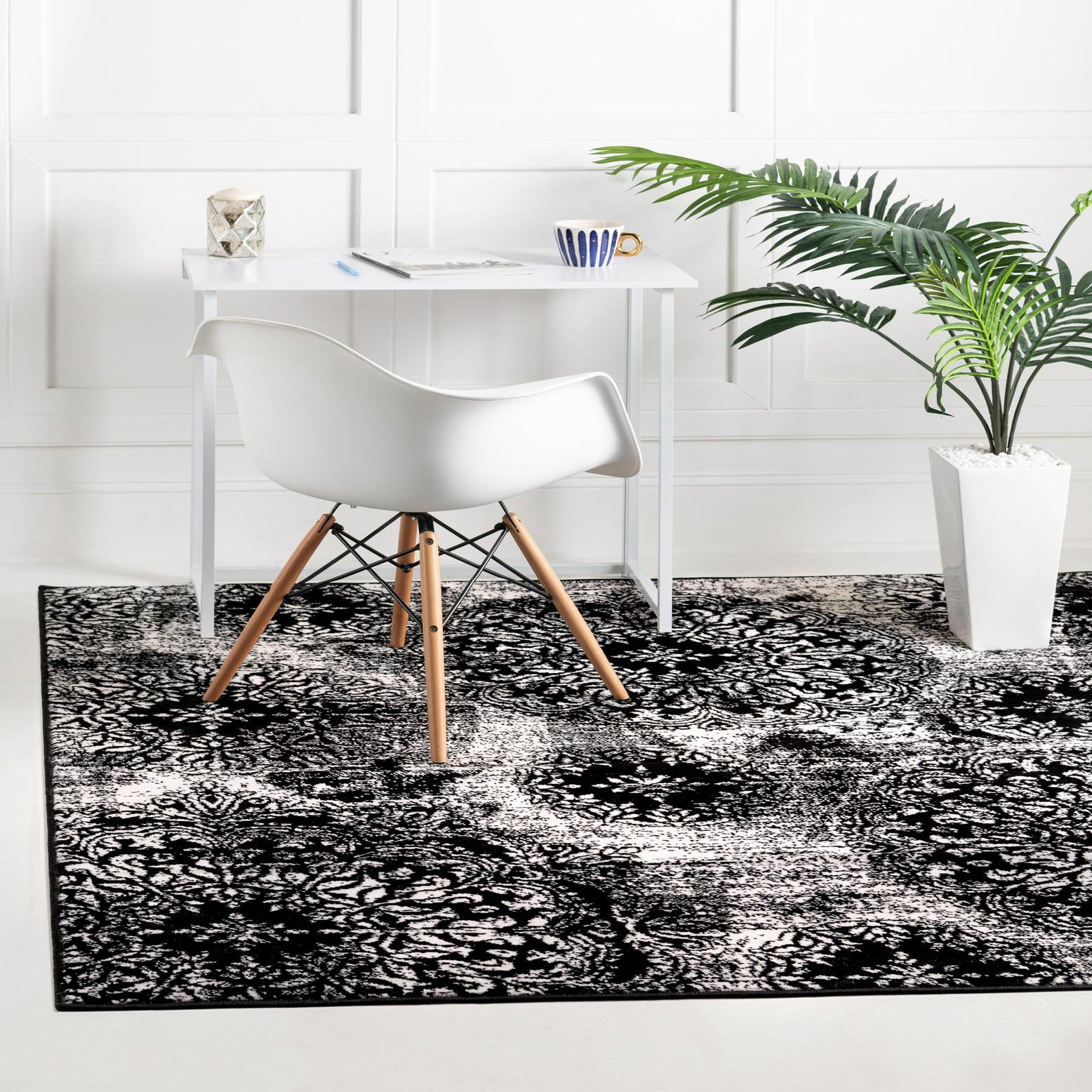Primary color is Black. Colors in this rug include: Black, Ivory.