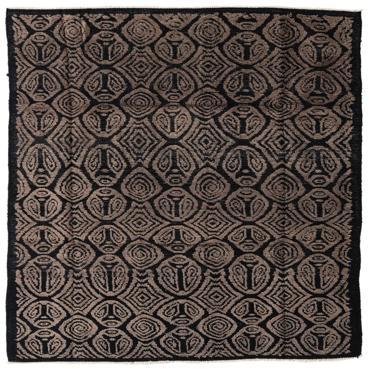 Primary color is Black. Colors in this rug include: Black, Brown.