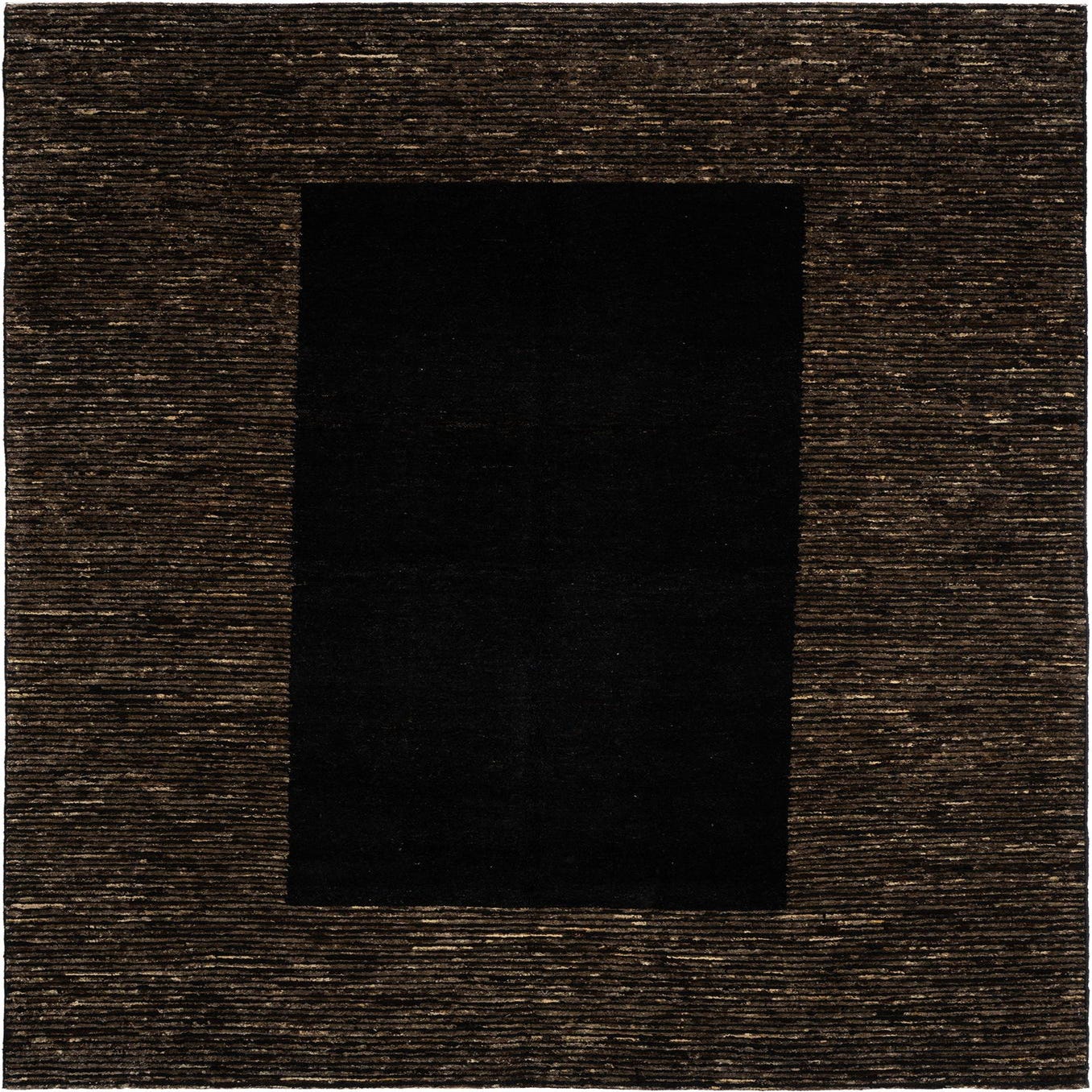 A 6x9 rectangular Juma rug featuring a solid black center bordered by a textured black and dark brown Persian pattern.