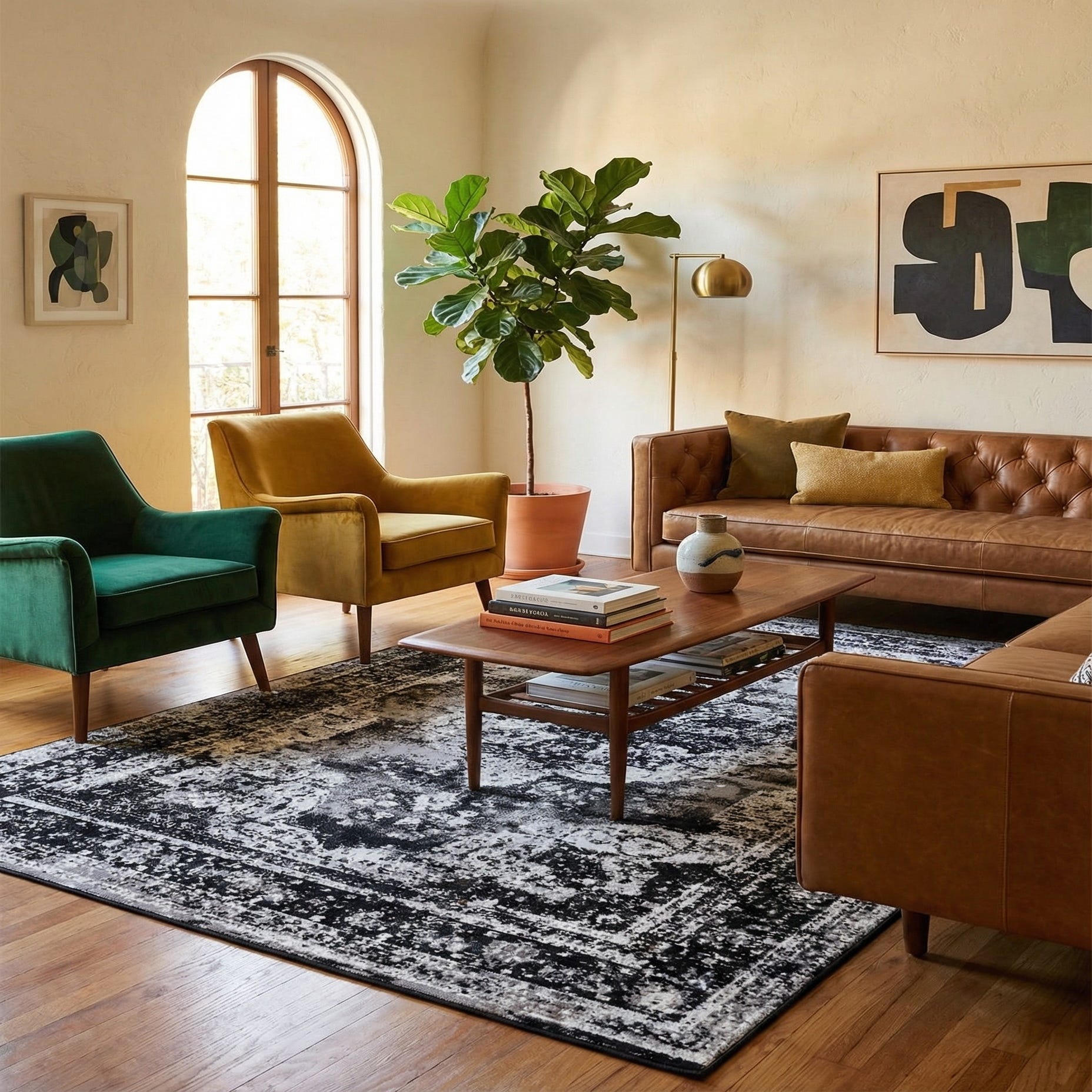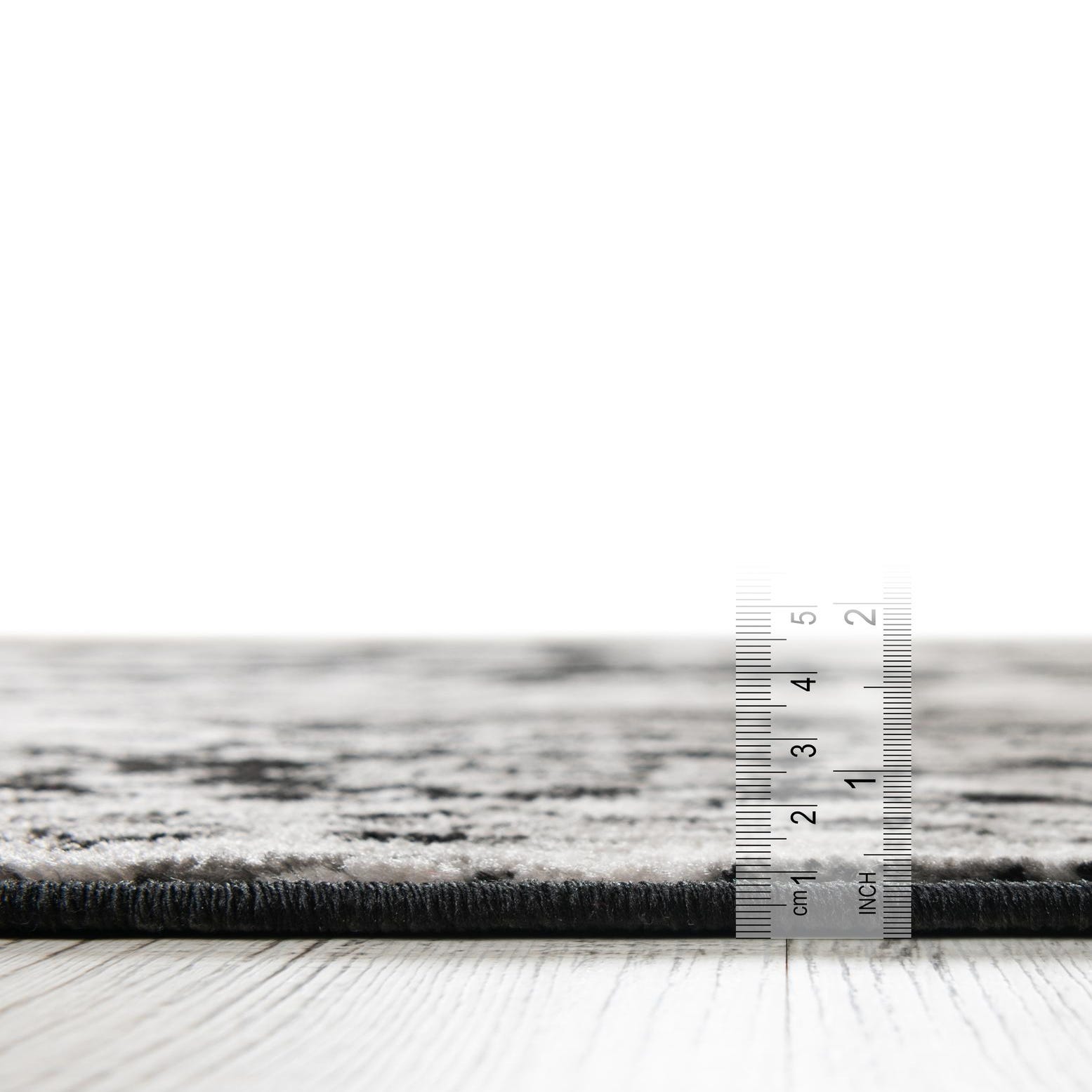 Primary color is Black. Colors in this rug include: Black, Gray, Ivory.