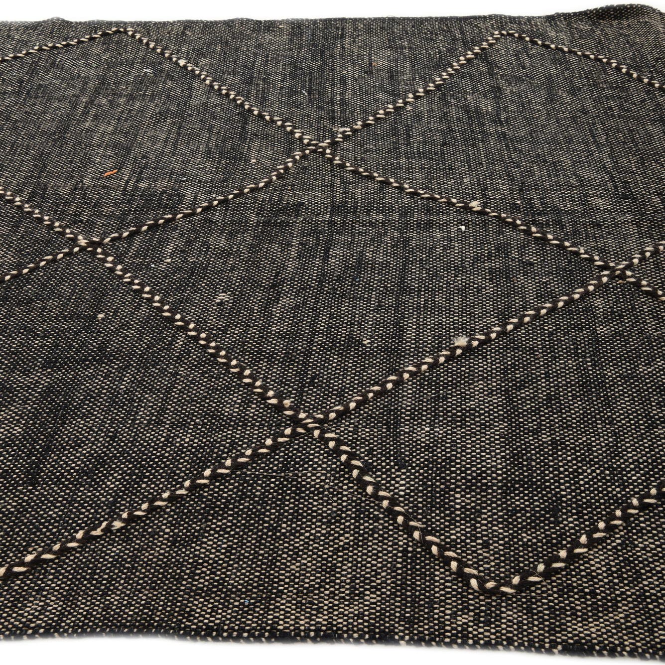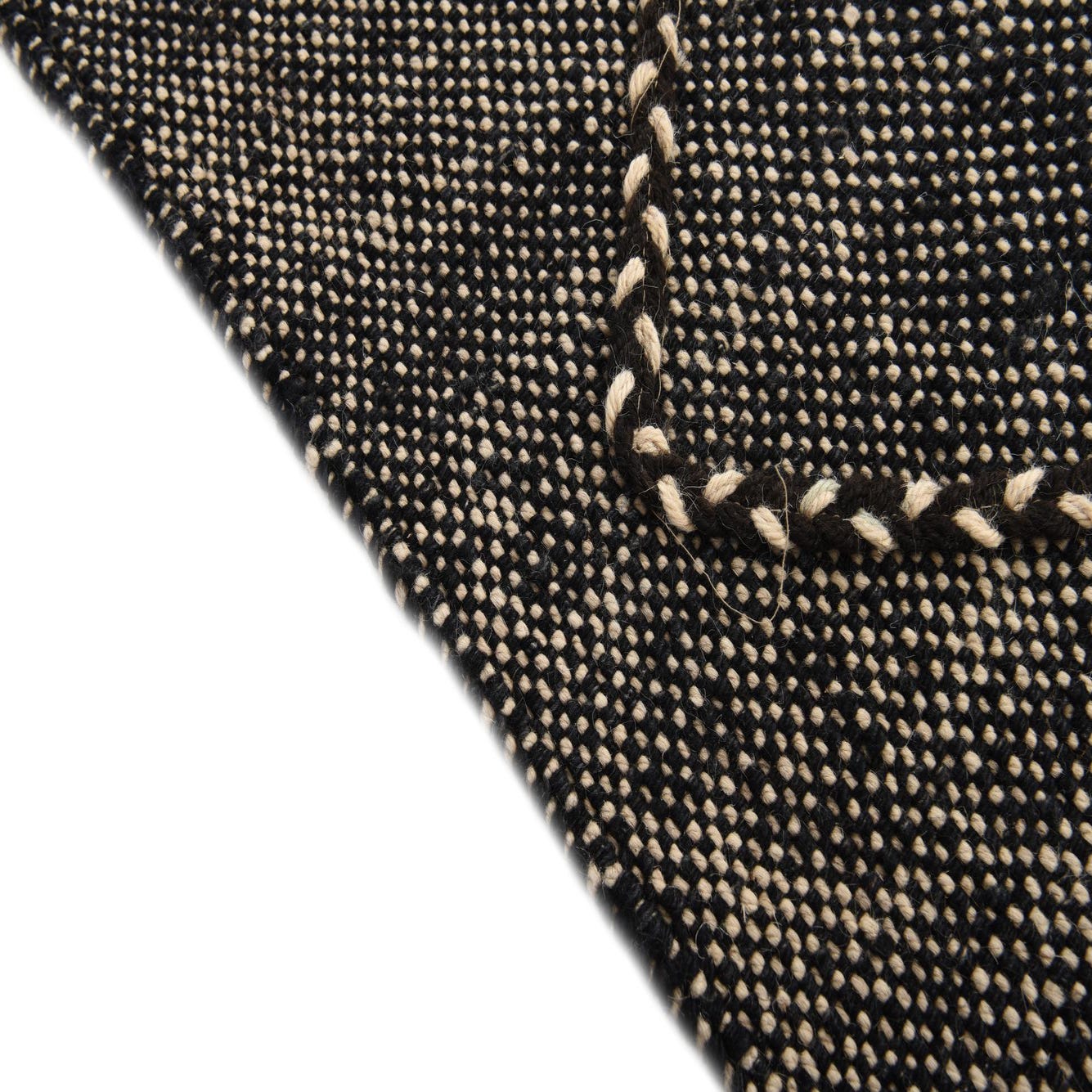 Primary color is Black. Colors in this rug include: Black, Beige.