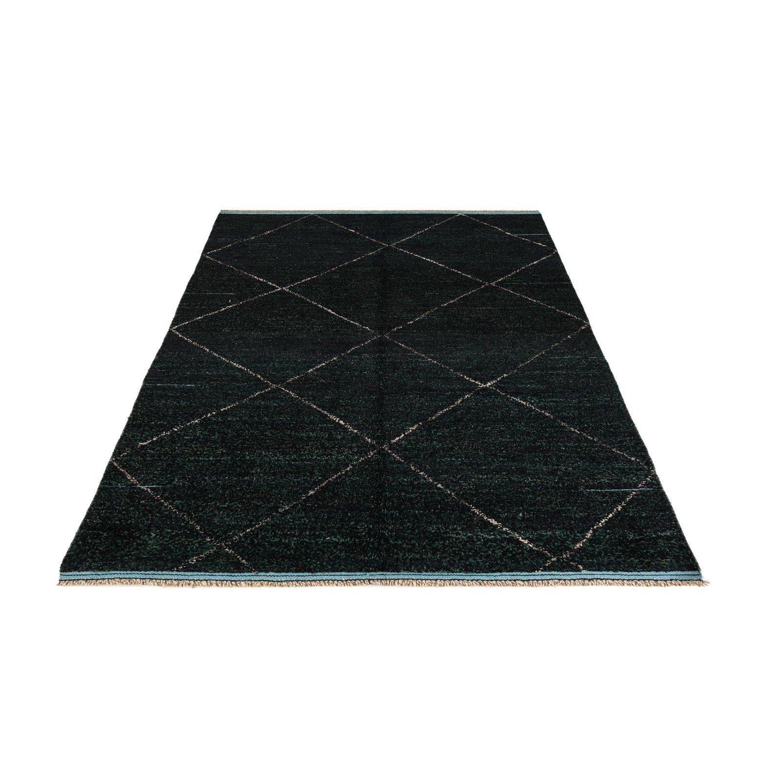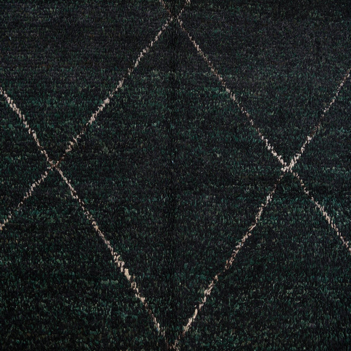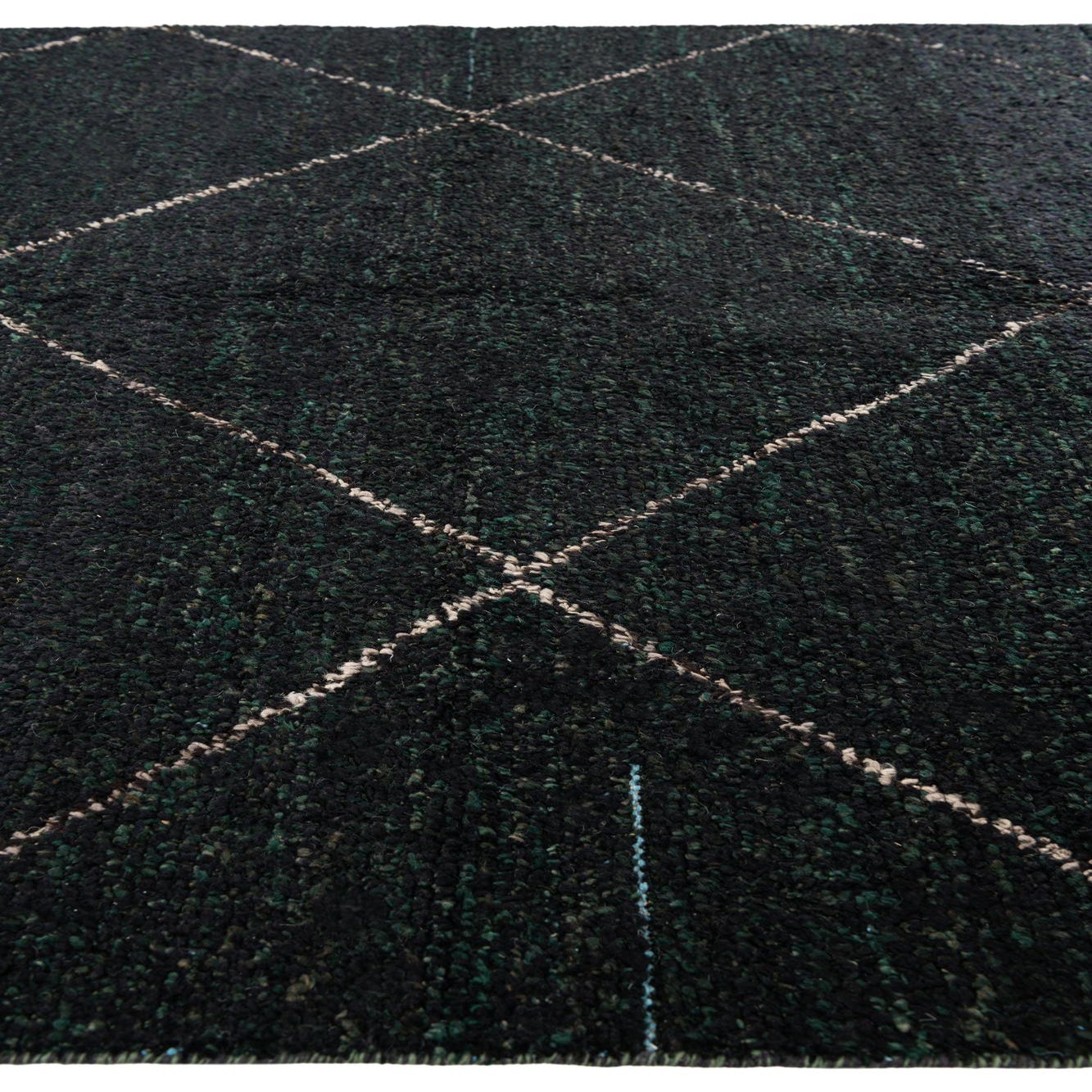 Primary color is Black. Colors in this rug include: Black, Hunter Green, Beige.