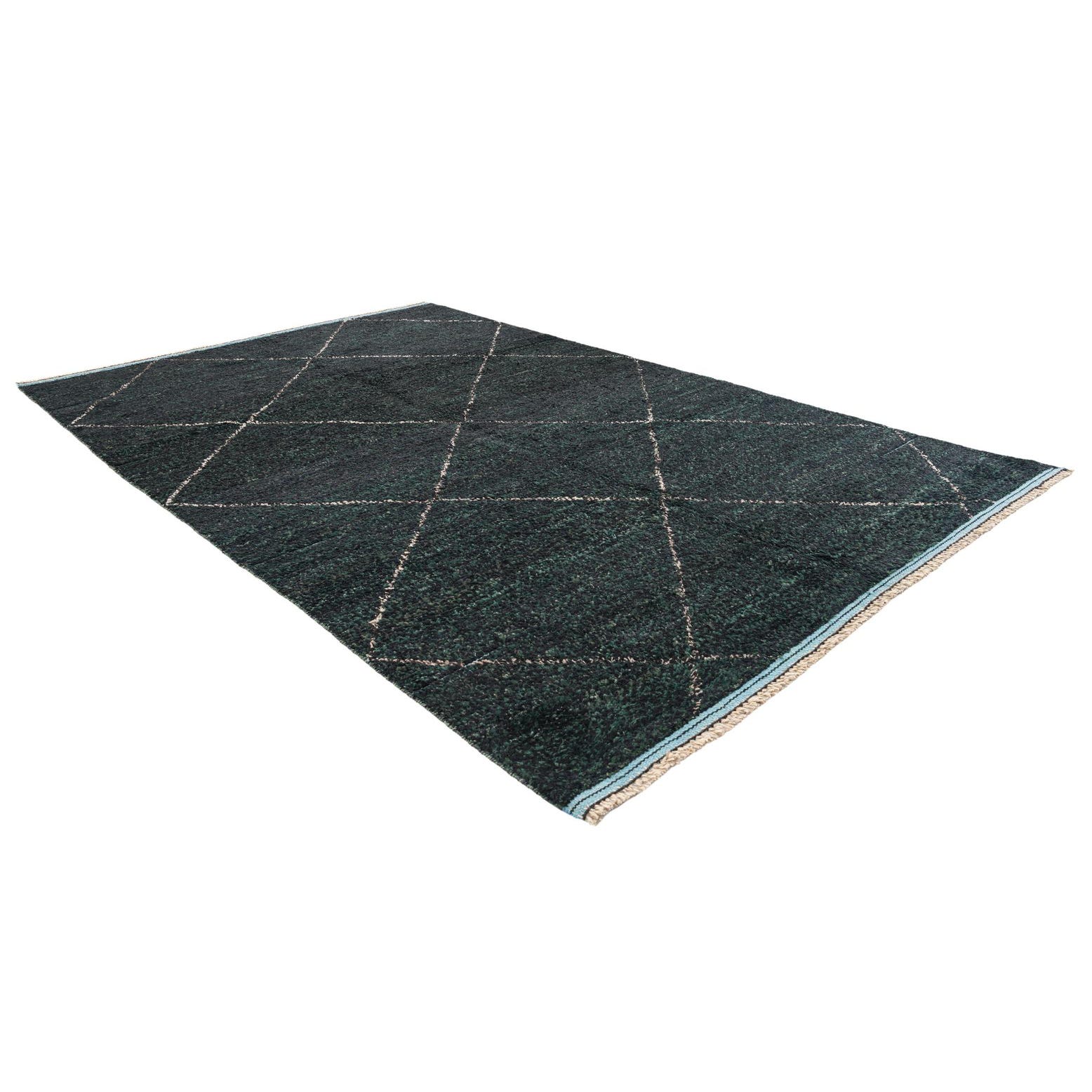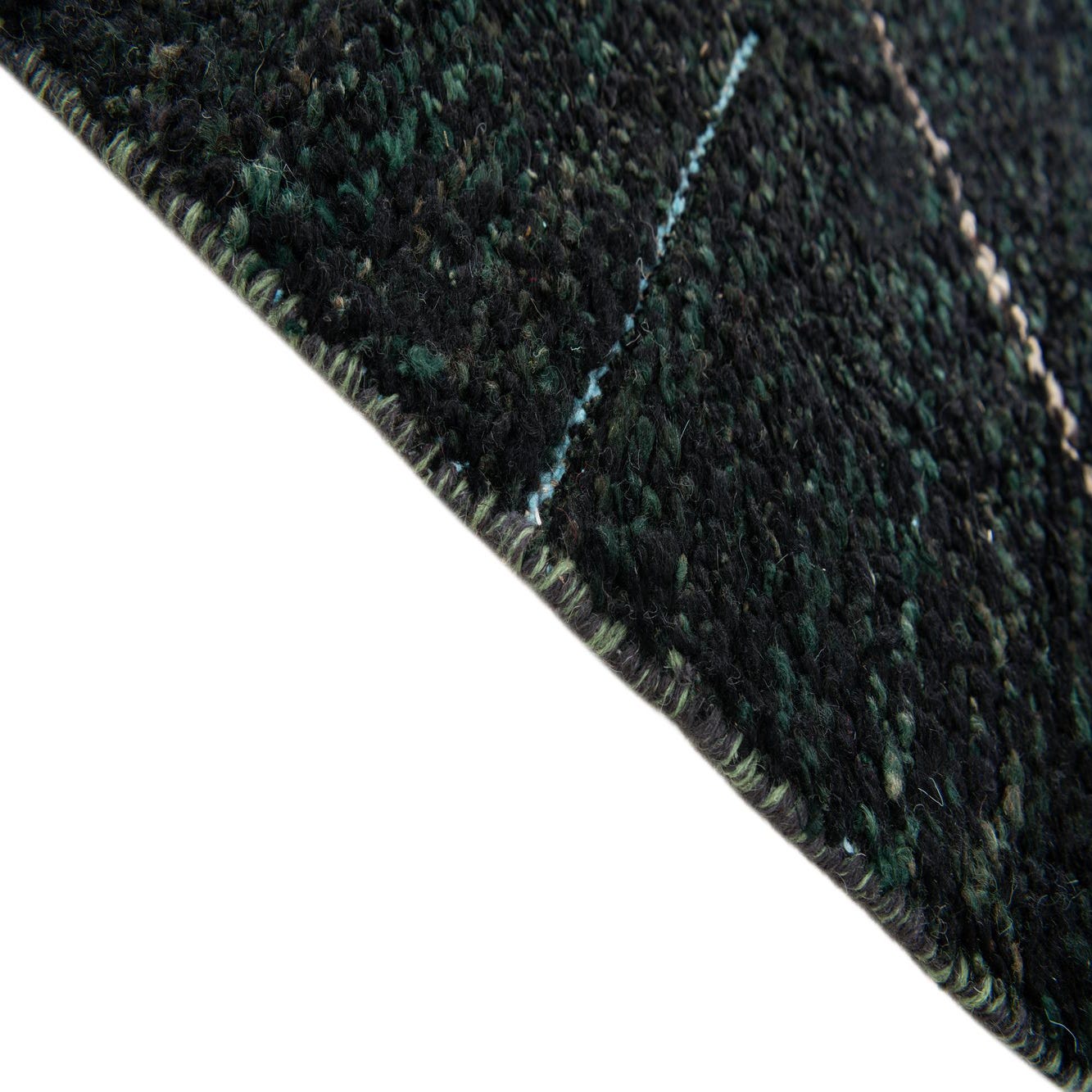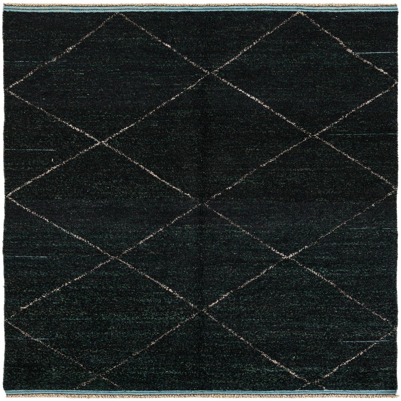 Primary color is Black. Colors in this rug include: Black, Hunter Green, Beige.