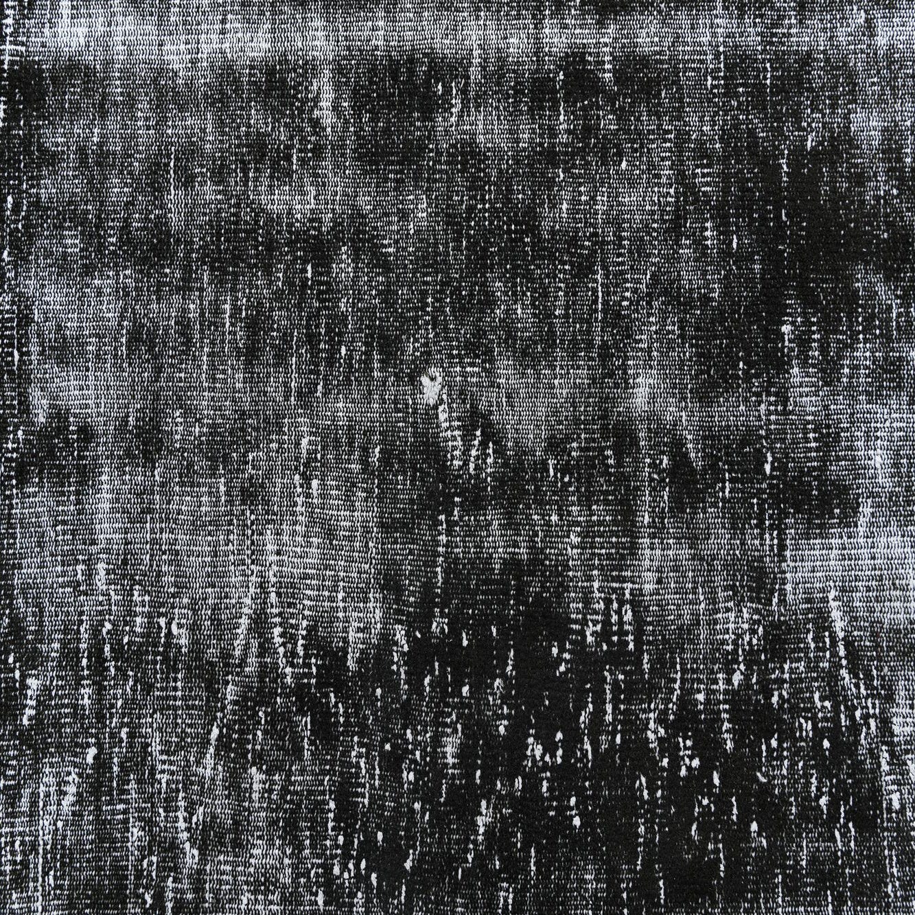 This Ultra Vintage collection rug presents a harmonious blend of black, gray, silver, and brown hues, set against a rich black background. The pattern exhibits a distressed texture, imparting an age-worn character that resonates with rustic charm and understated elegance. Handmade from 100% wool, the rug's substantial texture offers both tactile comfort and durability.