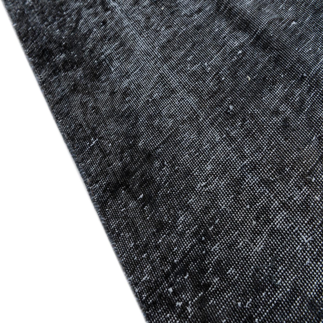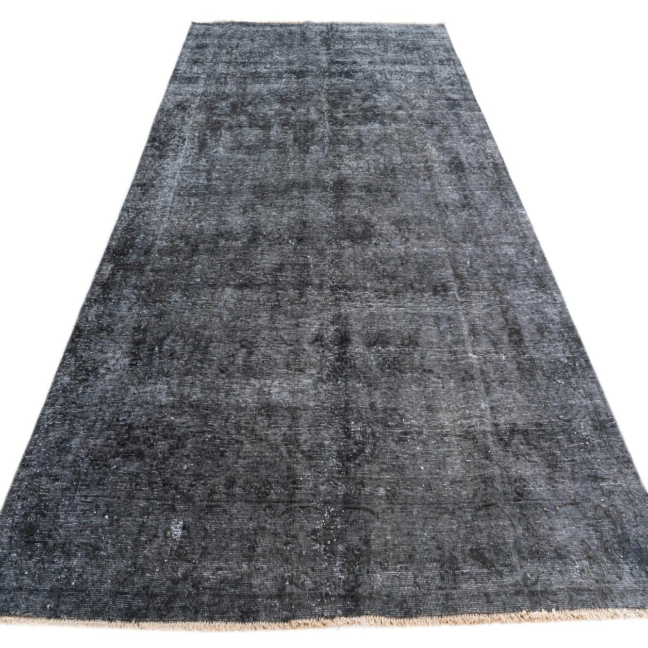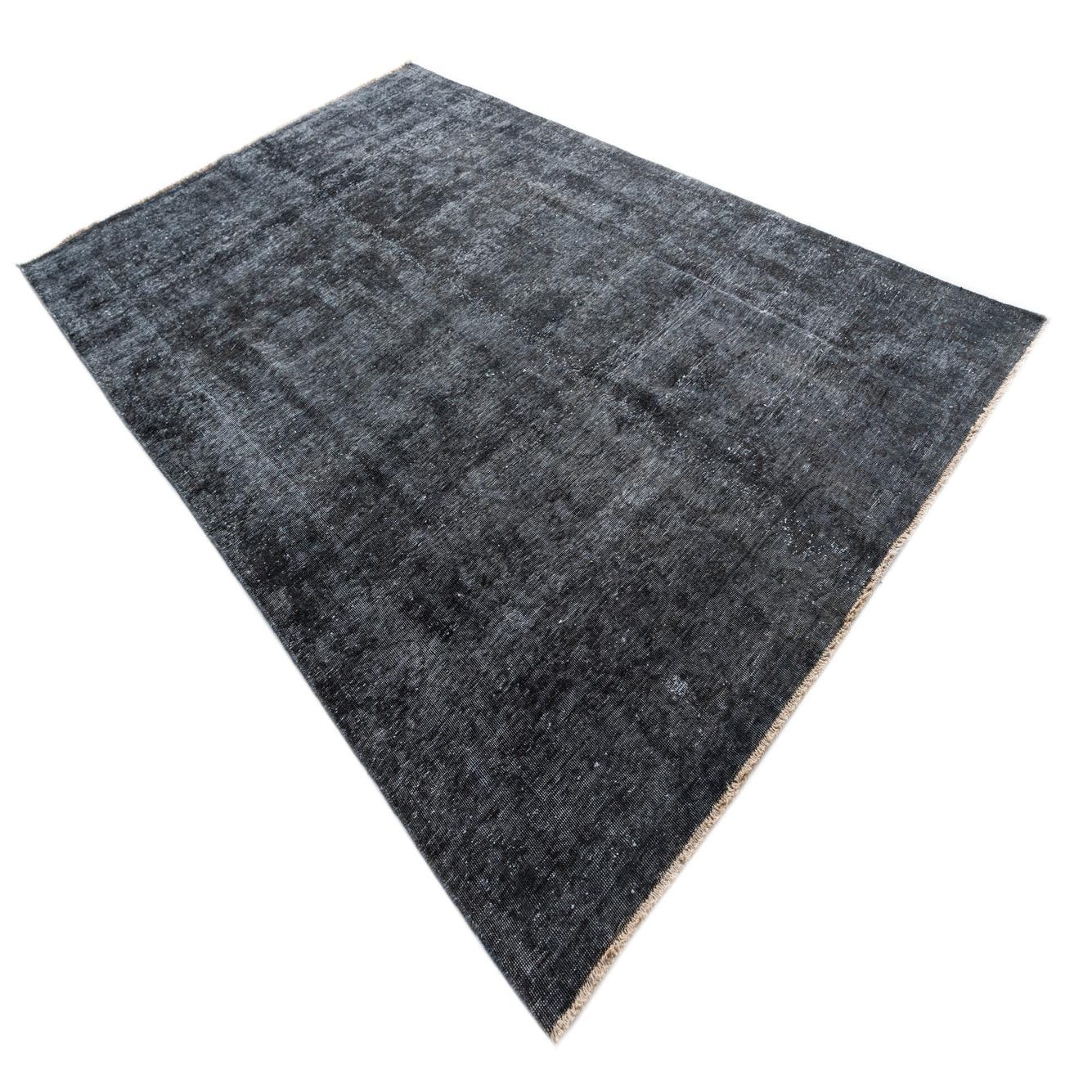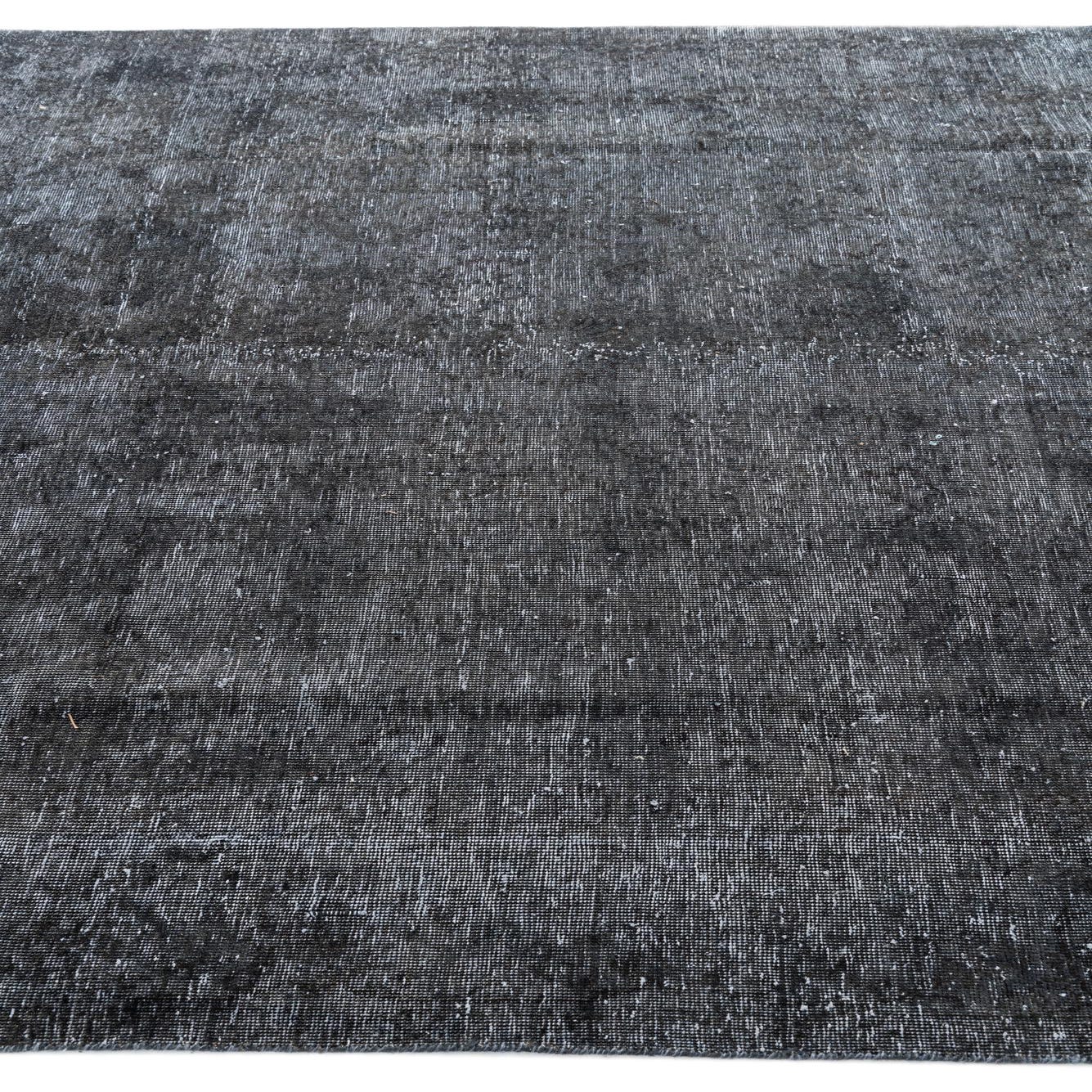 A 6x9 rectangular Ultra Vintage black wool rug with a subtle distressed Persian pattern, ideal for a living room.