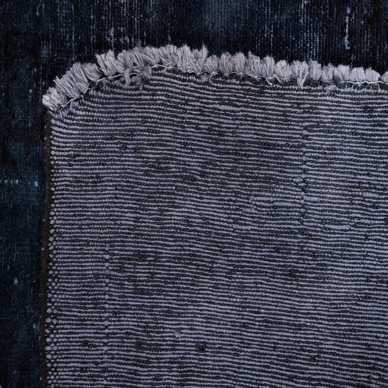 Primary color is Black. Colors in this rug include: Black, Navy Blue.