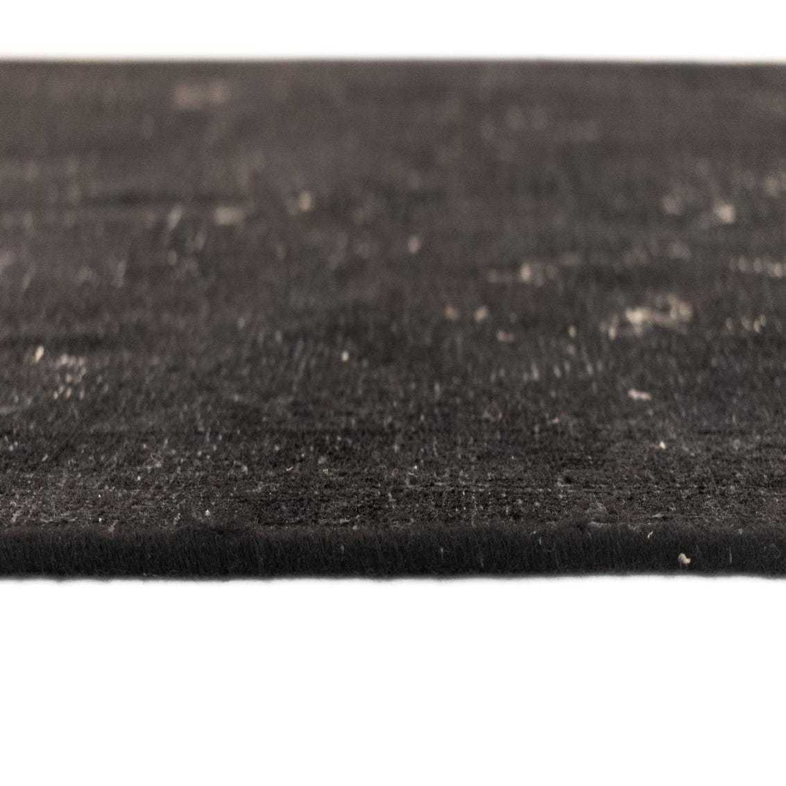 The Vintage Royal collection presents a hand-made 6x9 rug crafted from 100% wool, offering a luxurious feel with a durable finish. The rug features a deep black background, imbued with a pattern of subtle, worn motifs in brown, creating a sense of depth and antiquated elegance. The texture and craftsmanship reflect the rich heritage and intricate designs found in traditional rugs.