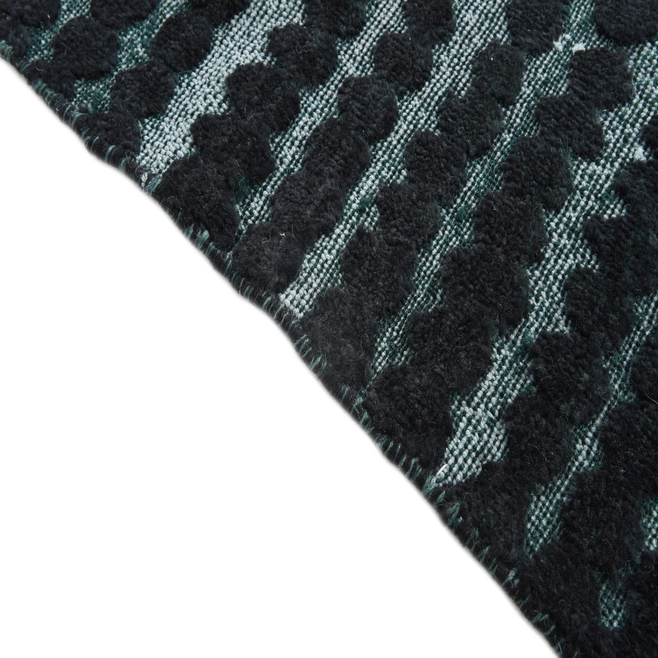 Primary color is Black. Colors in this rug include: Black, Hunter Green.