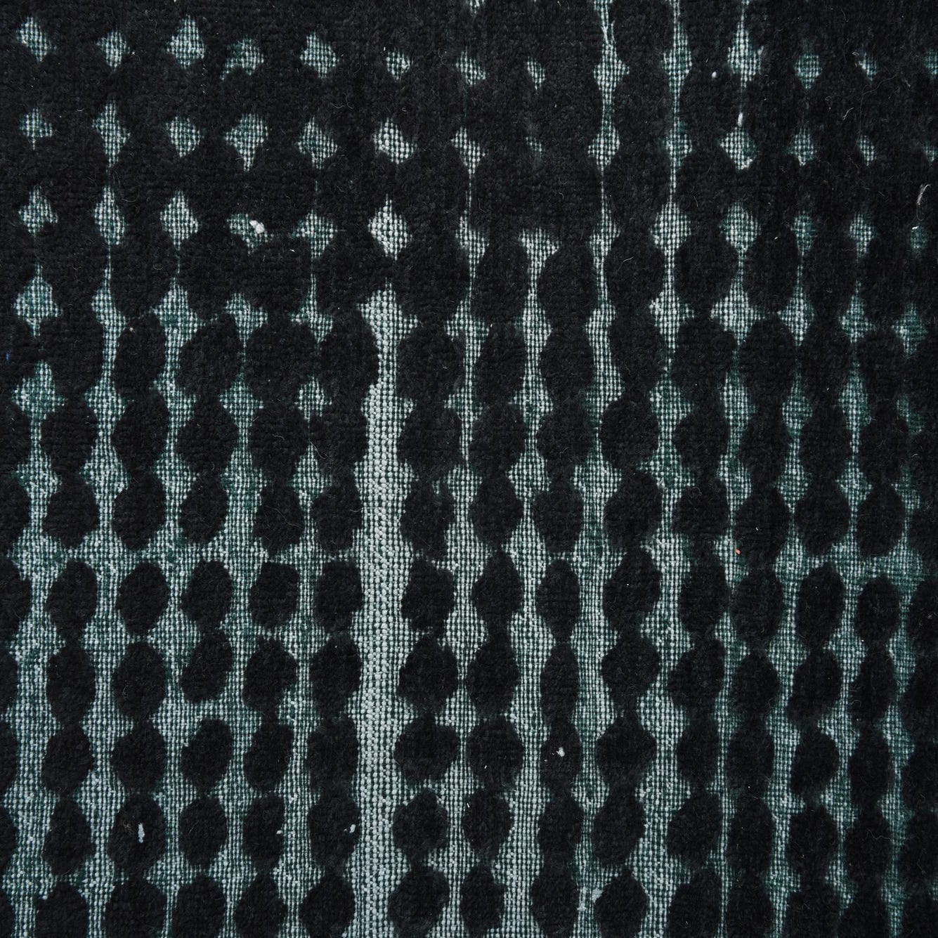 A 7x10 rectangular Darya rug with a modern abstract pattern in varying shades of black, showcasing its high pile wool texture.