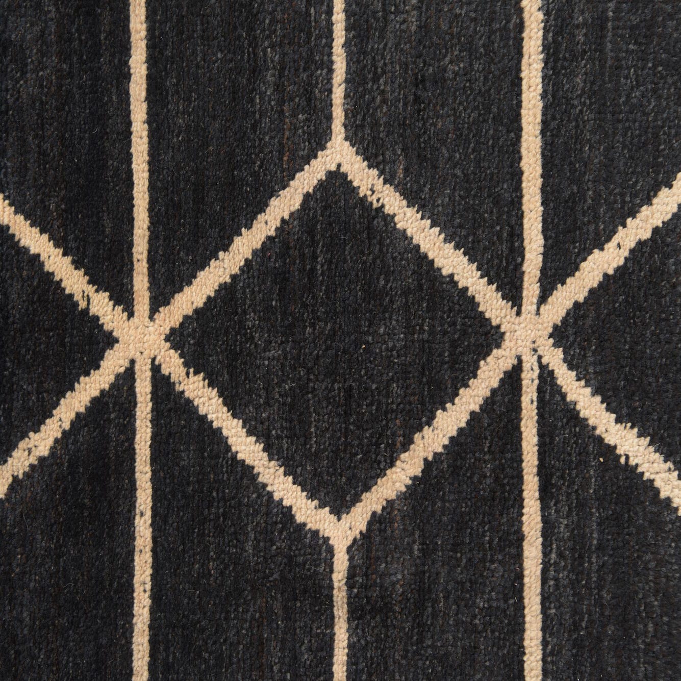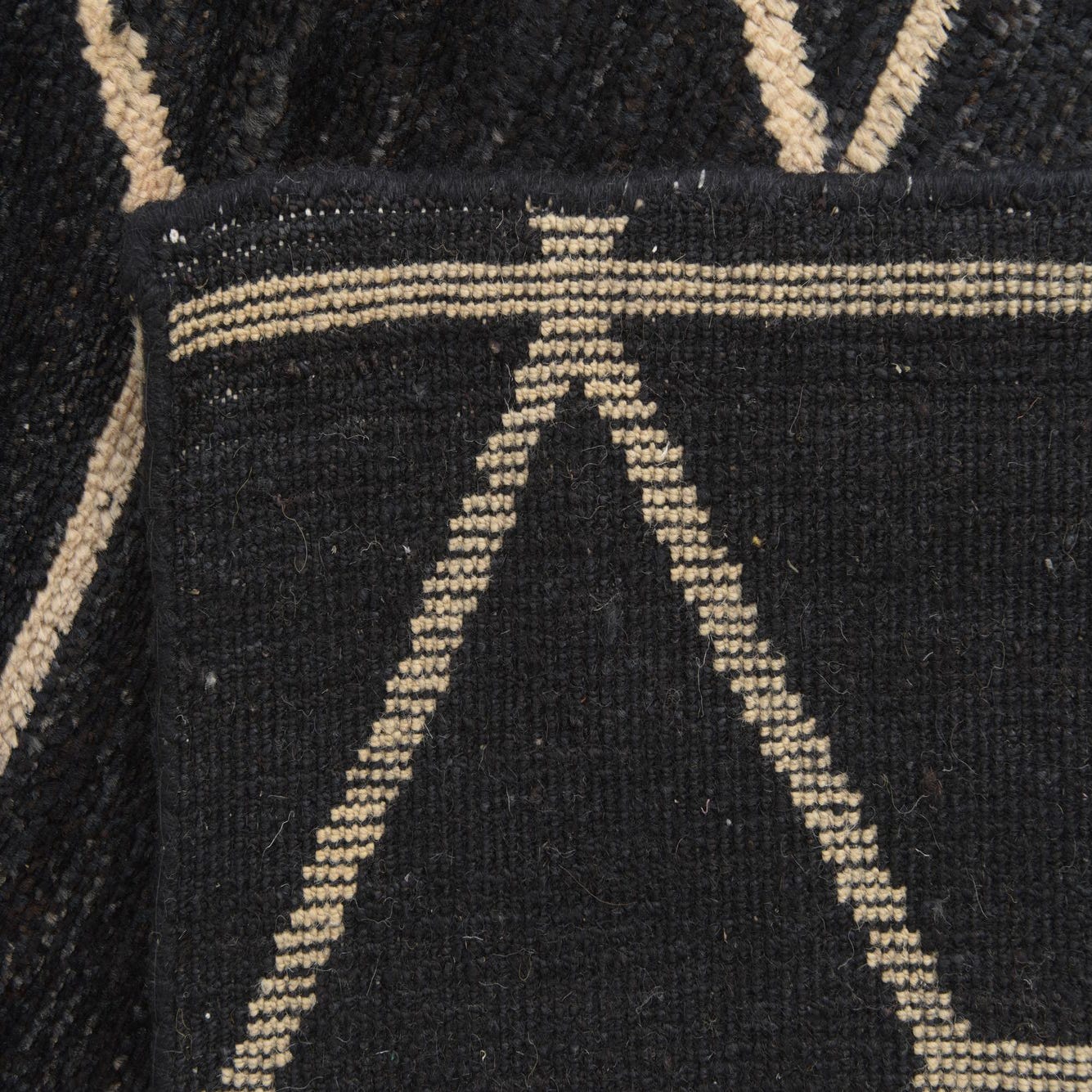 This piece's minimalist color scheme and bold pattern make it a suitable addition for modern and transitional spaces seeking a striking visual anchor. The black and ivory hues can complement monochromatic interiors or serve as a grounding force in more eclectic settings. It pairs well with sleek furniture in a minimalist layout, providing an elegant contrast against light hardwood floors or acting as a cohesive element within a darker color scheme. The rug's proportions make it an excellent choice for defining seating areas in living rooms or adding a touch of sophistication to spacious bedrooms.
