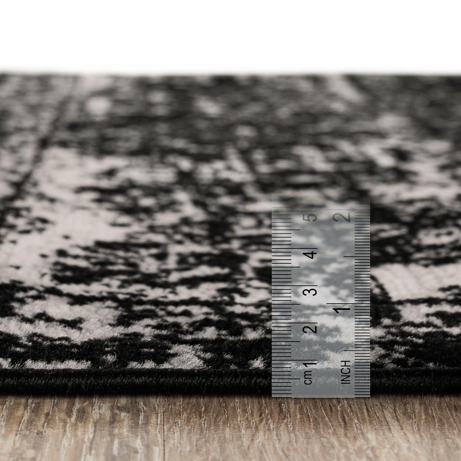 Primary color is Black. Colors in this rug include: Black, Gray, Ivory.
