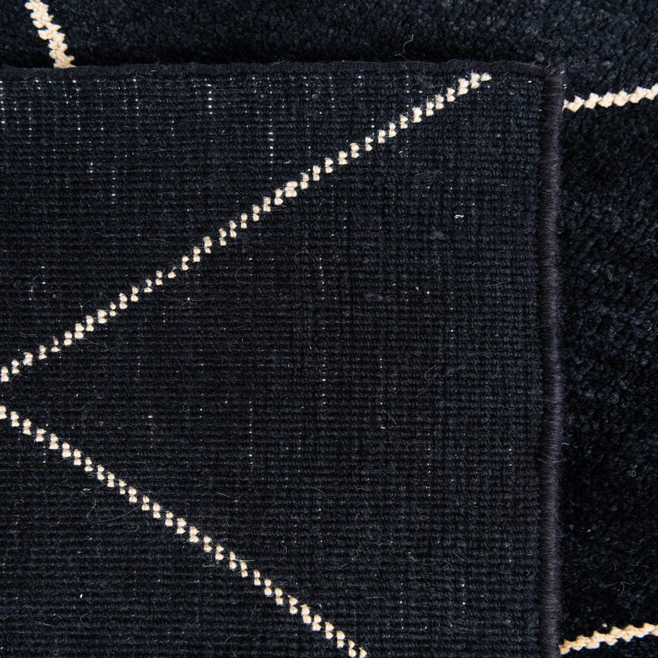 Primary color is Black. Colors in this rug include: Black, Ivory.