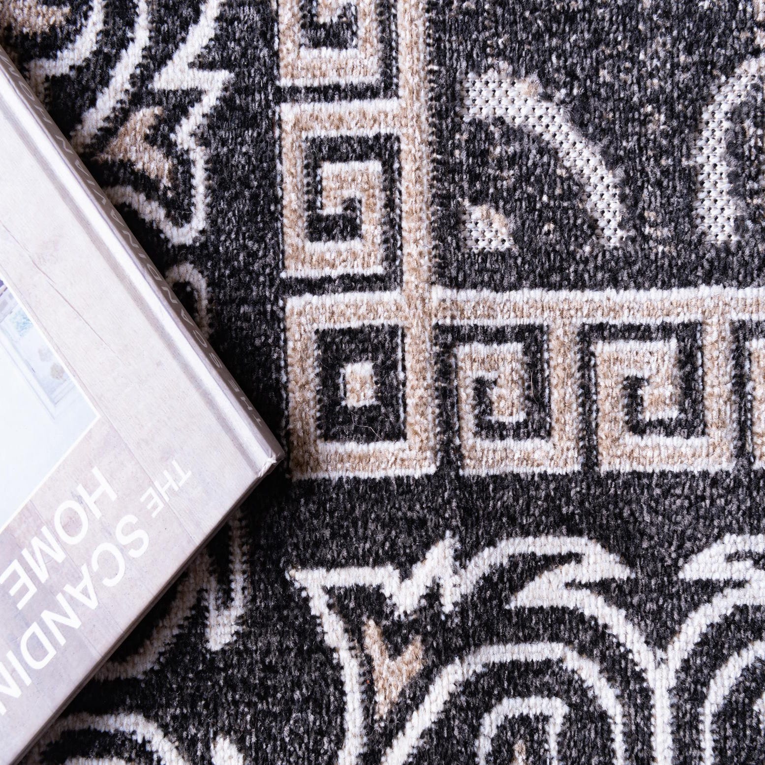 Primary color is Black. Colors in this rug include: Black, Beige.