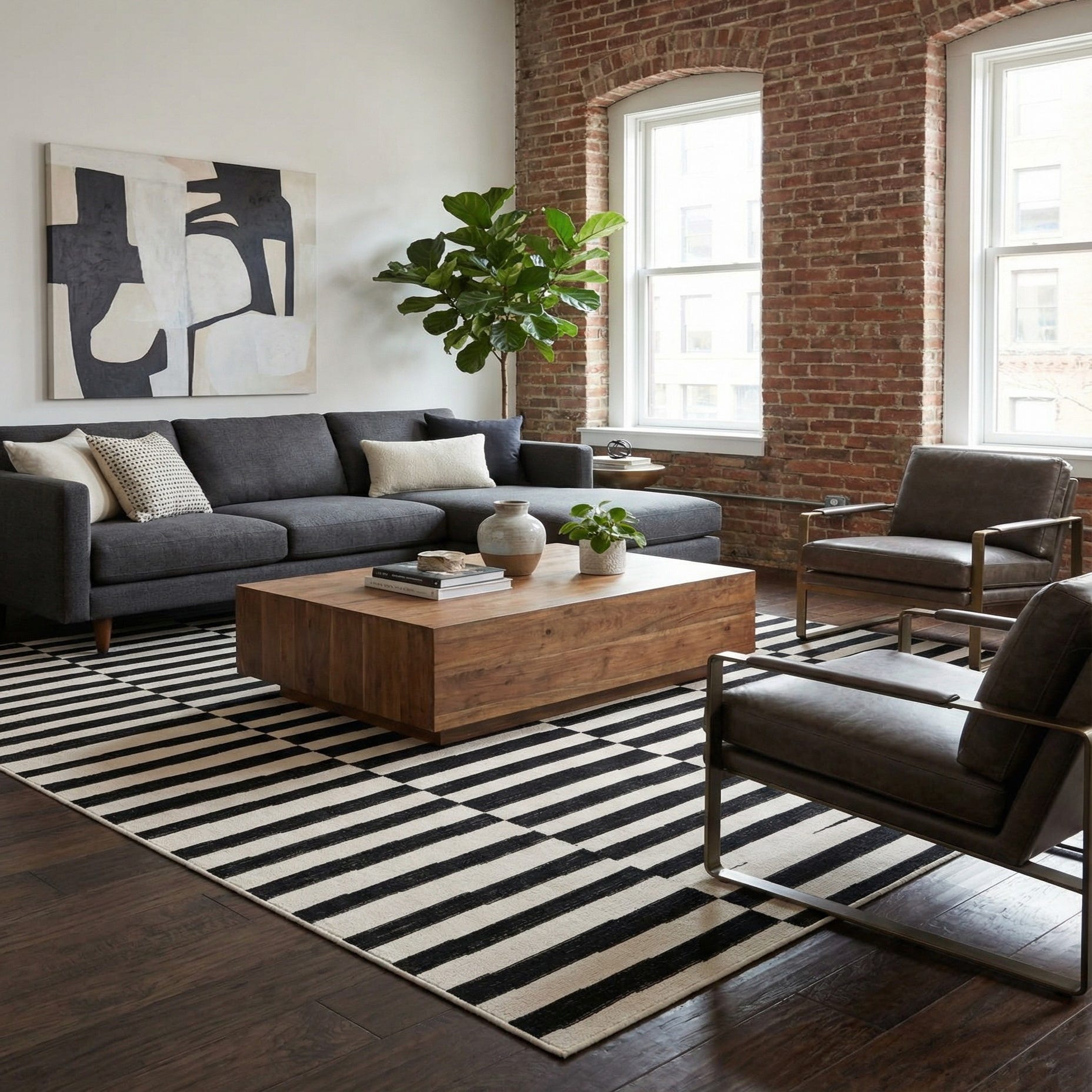 Thanks to its stain-resistant and shed-free properties, this rug is an ideal choice for high-traffic areas or homes looking for a fuss-free decorative element. The crisp contrast between the black background and ivory stripes enables this area rug to stand as a statement piece in minimalist, contemporary, and transitional interiors. Pair it with sleek furniture to enhance a modern aesthetic, or let it ground a more eclectic space by adding a touch of graphic appeal. The versatility of the SoHo collection makes it effortlessly harmonious with both monochromatic schemes and more vibrant decors seeking a grounding element.