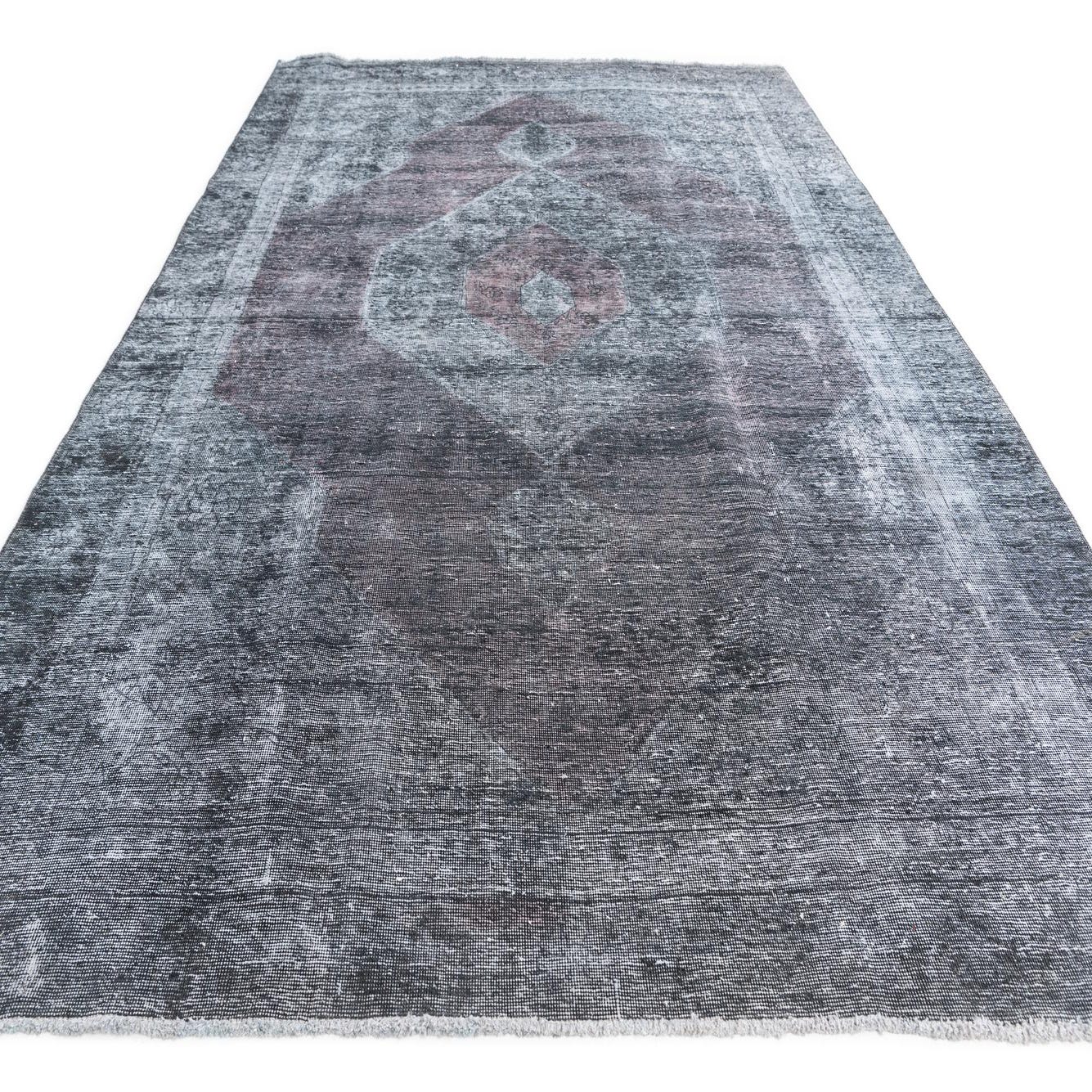 This Persian Ultra Vintage rug is an antique Persian Rug that has been washed, over-dyed, and then shaved down to a low pile. Look at the detail pictures to fully appreciate the uniqueness of this piece.