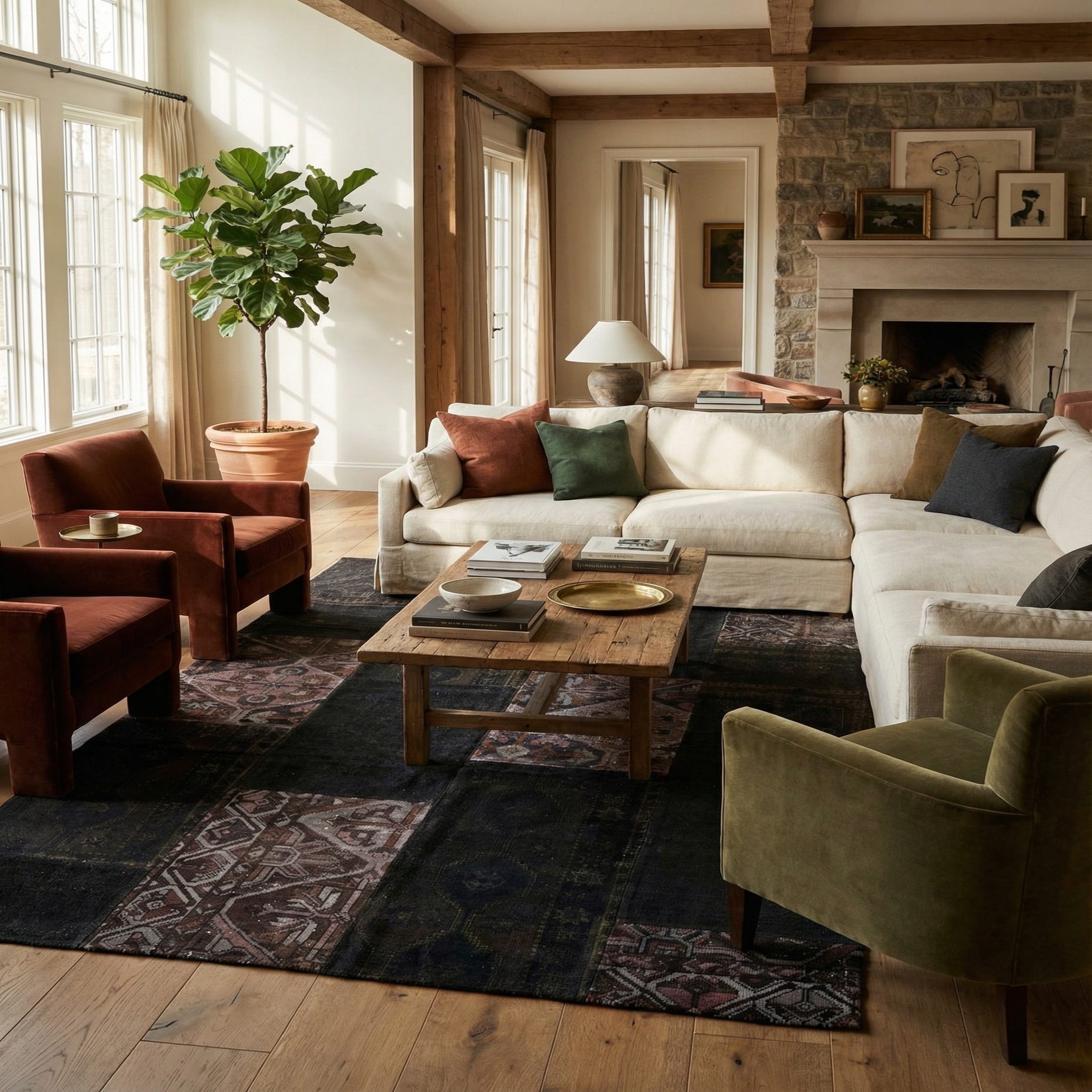 Ideal for interiors that celebrate a mix of old-world charm and modern minimalism, this rug can anchor a room with its understated elegance. It could serve as a sophisticated focal point in a contemporary living space, balance the richness of a classic study, or add warmth to a chic industrial loft. The rug’s versatility allows it to meld seamlessly with a variety of furniture styles, from sleek leather couches to richly stained wooden tables.