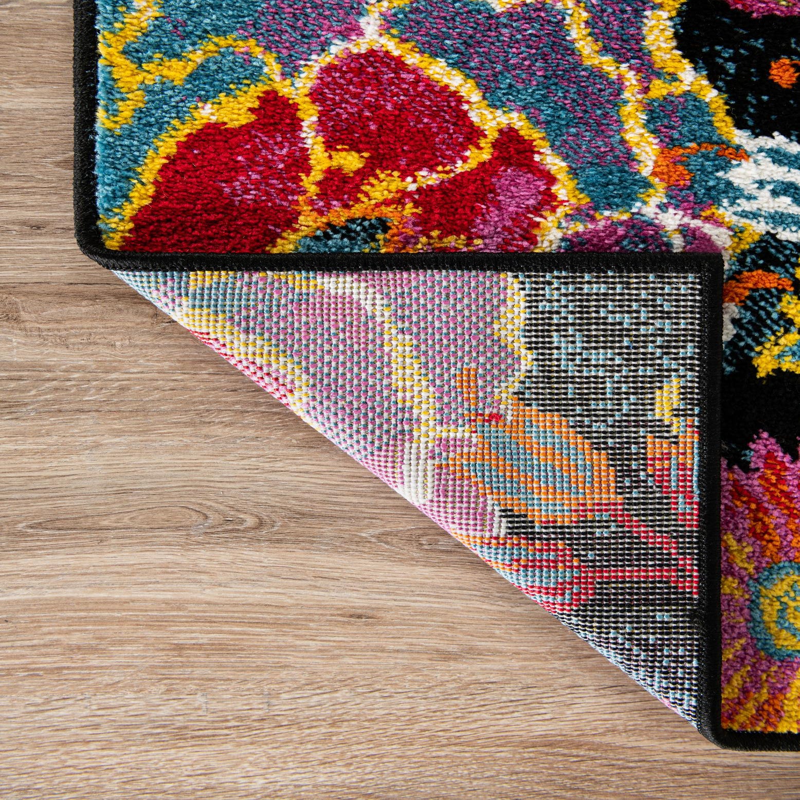 Machine-made from 100% polypropylene, the pile has a smooth, low-to-medium height that feels soft underfoot while keeping the printed colors crisp and vibrant. The octagonal silhouette makes this piece a strong focal point — place it beneath a round dining table, anchor a small seating nook, or set it in an entry to introduce color and pattern. It pairs well with warm wood furniture and black metal accents, neutral upholstery to let the rug’s palette stand out, or richer jewel-toned accessories for a coordinated, energetic look.