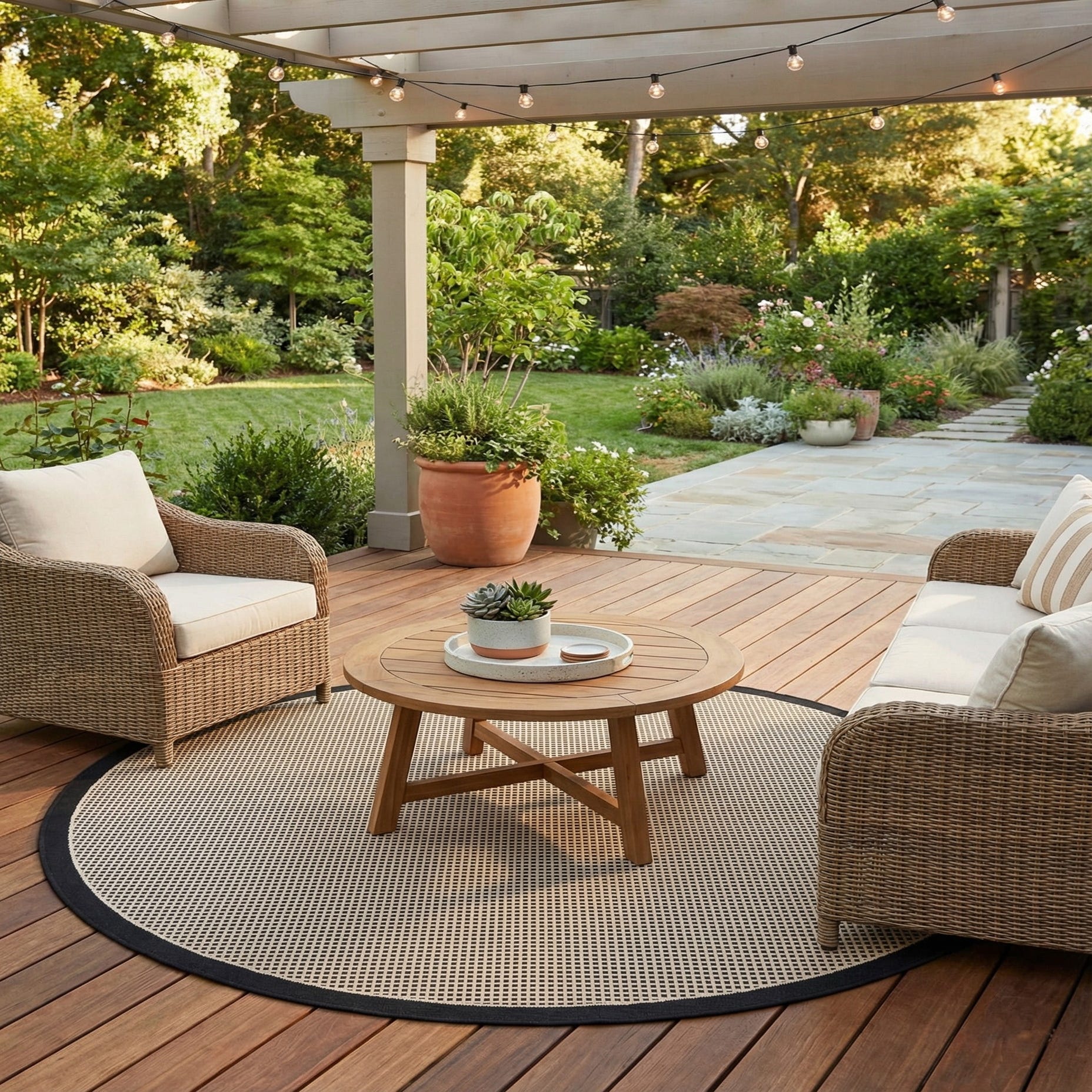 7' 10 x 7' 10 Washable Border Indoor / Outdoor Round Rug