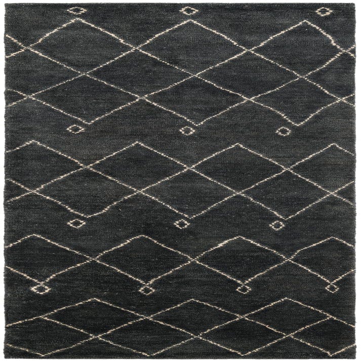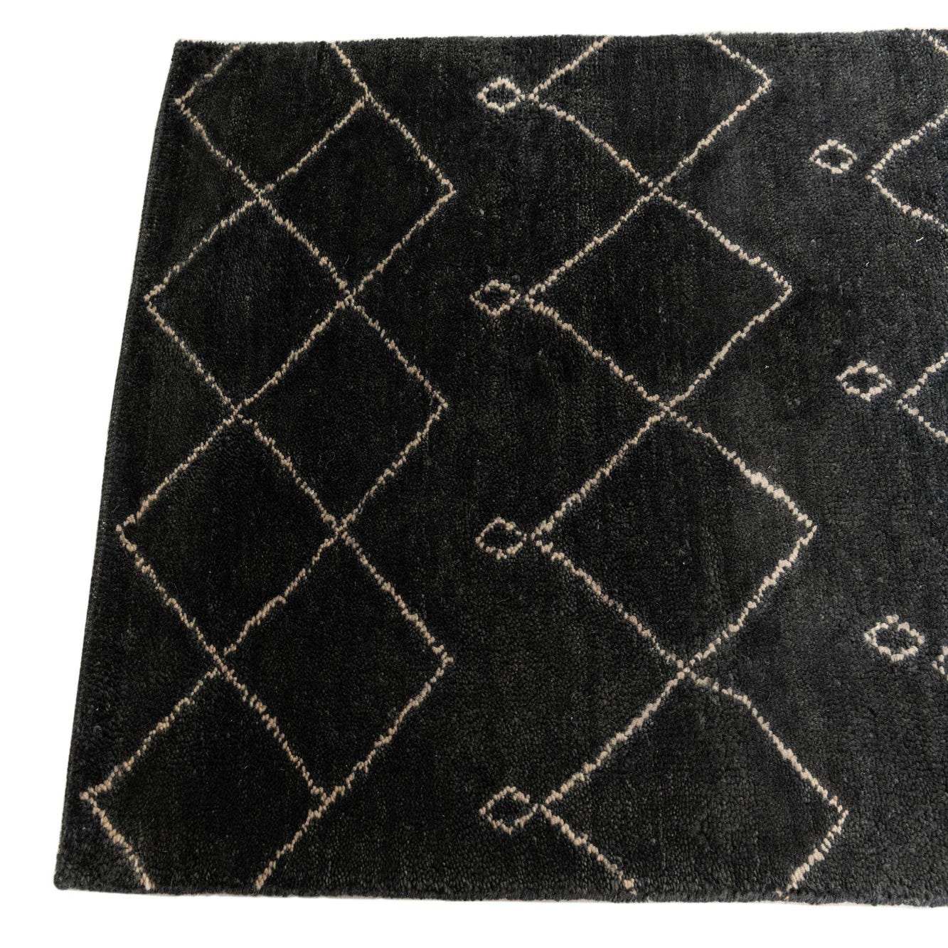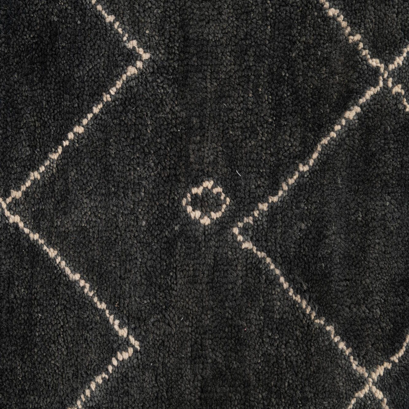 A dark gray 8 ft runner rug with a high pile and modern geometric diamond pattern in off-white, perfect for a hallway.