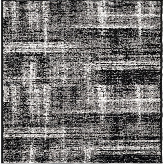 Primary color is Black. Colors in this rug include: Black, Gray, Ivory.