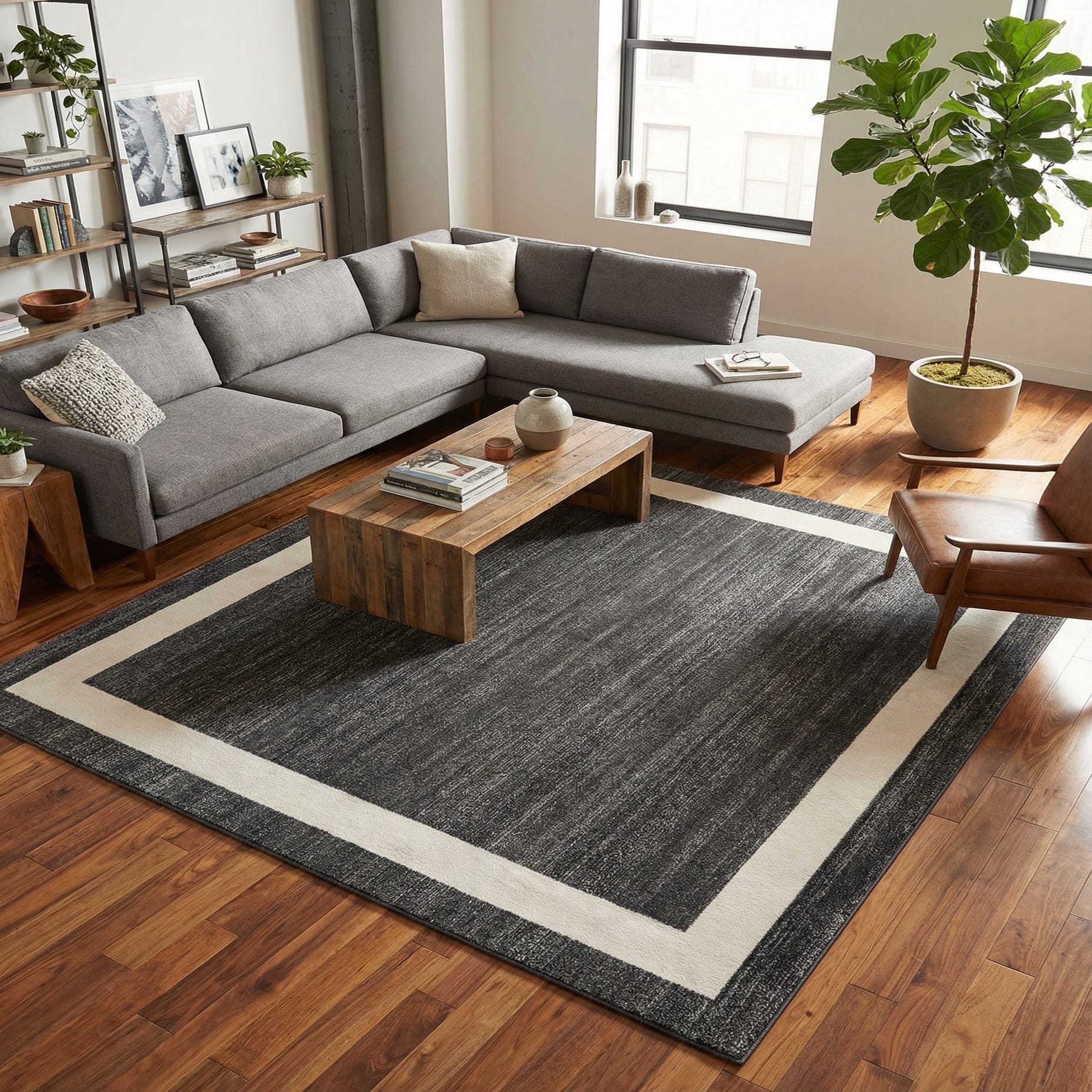 This monochrome design fits well in contemporary and minimalist interiors—use it to anchor a seating group, define a home office, or add contrast beneath a bed. It also pairs nicely with warm wood furniture, metal accents in industrial schemes, or the pared-back layers of Scandinavian decor where clean lines and restrained color are key.