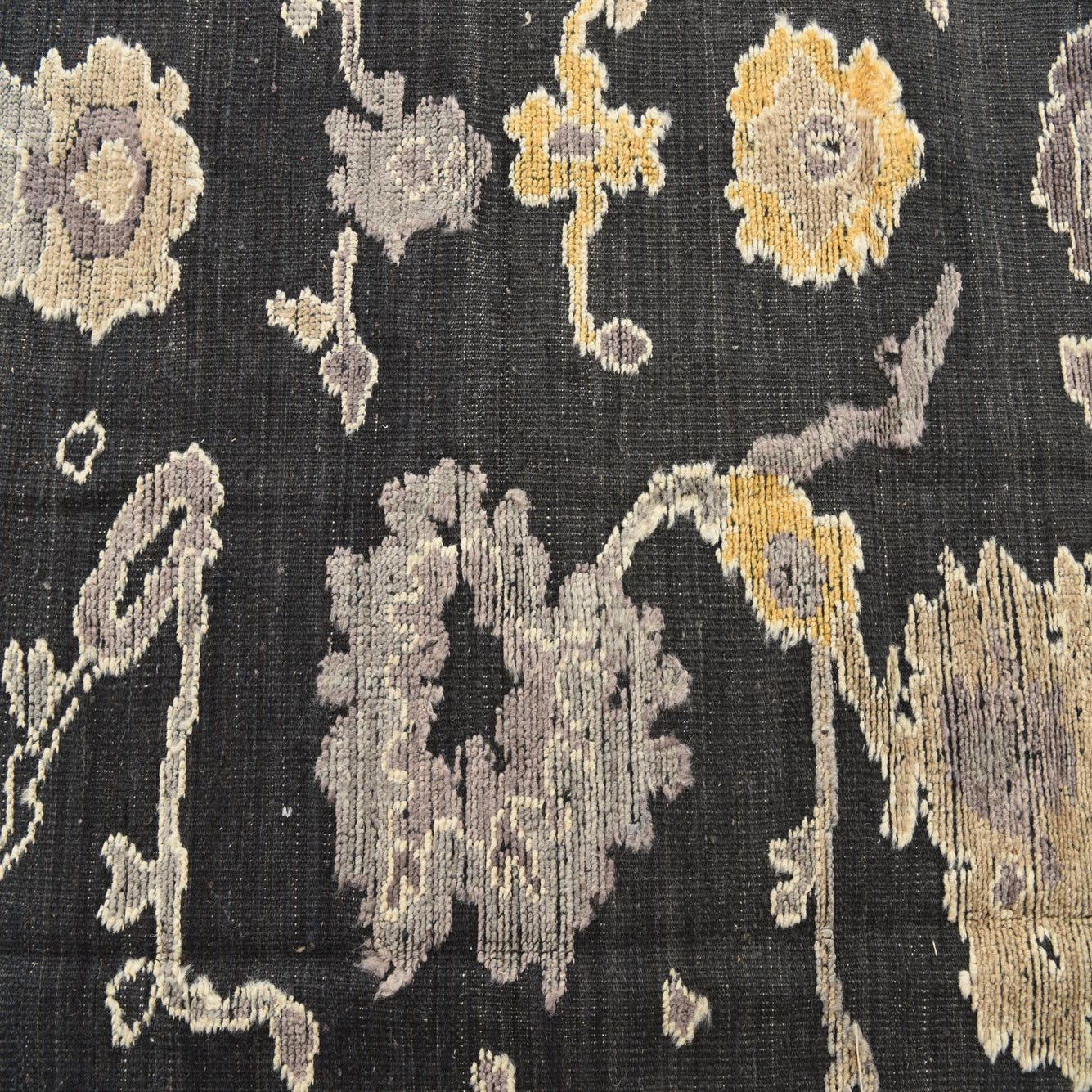 Primary color is Black. Colors in this rug include: Black, Ivory, Yellow, Light Brown.