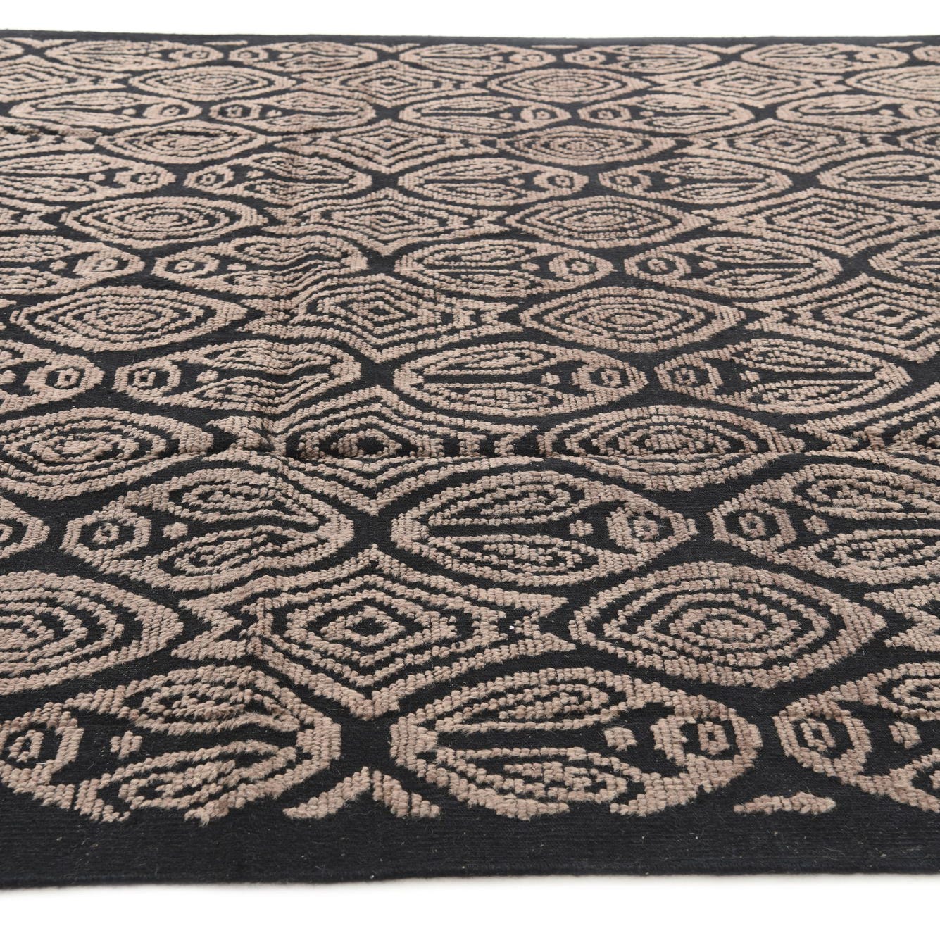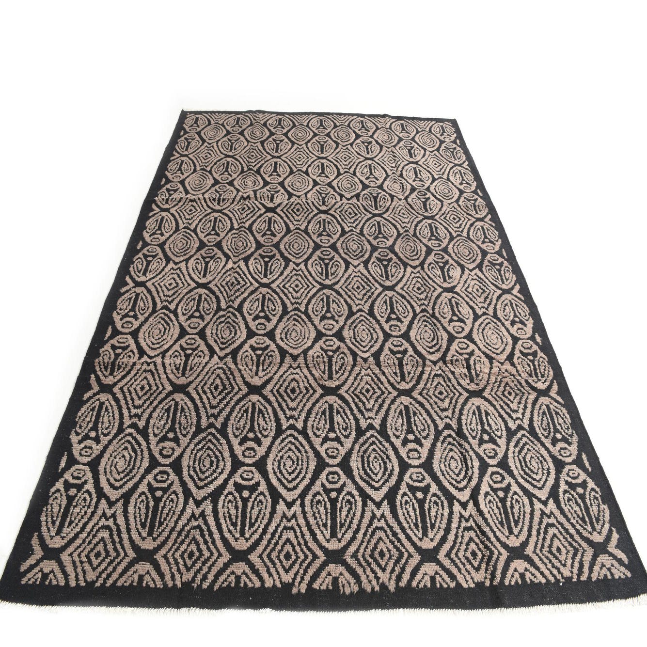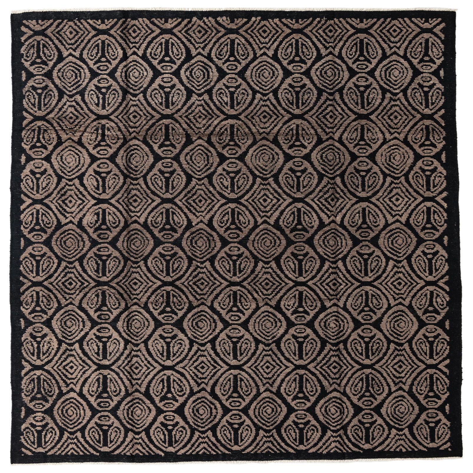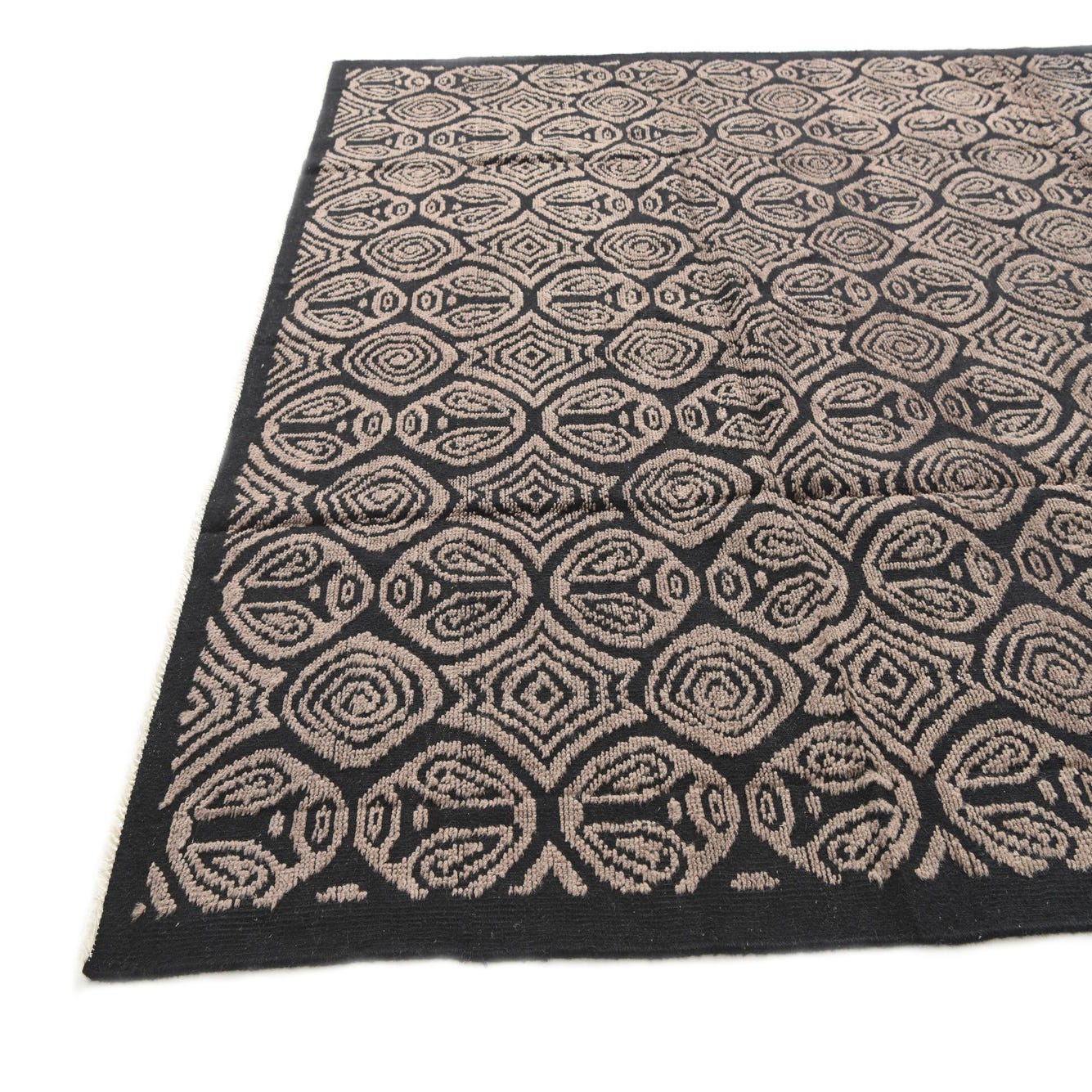 Primary color is Black. Colors in this rug include: Black, Brown.